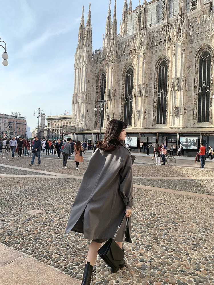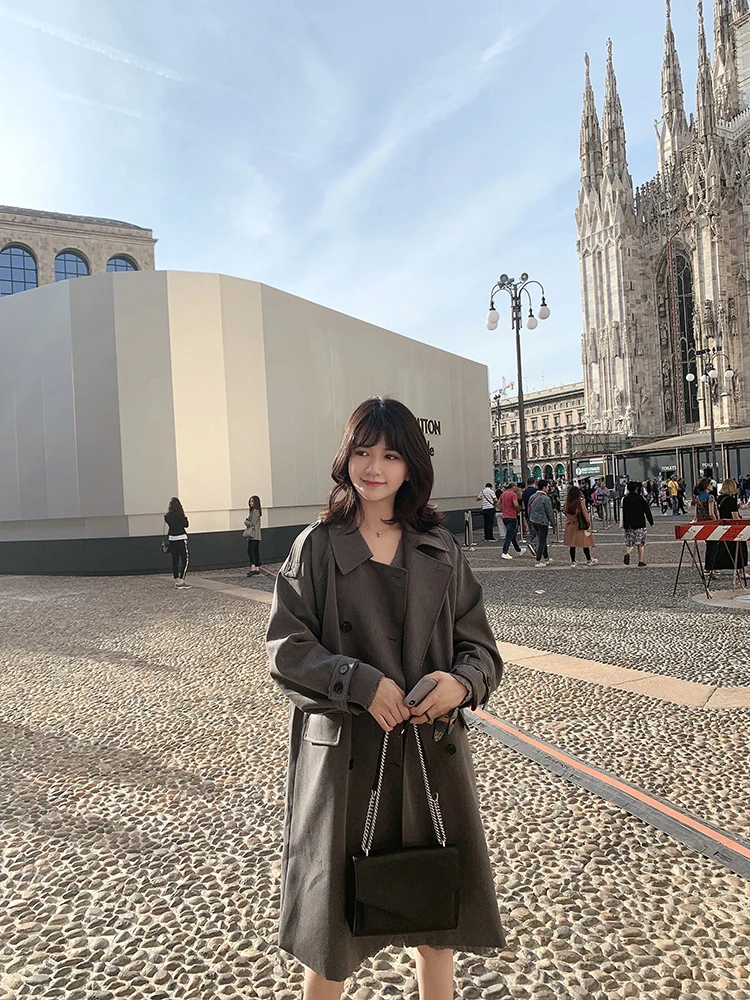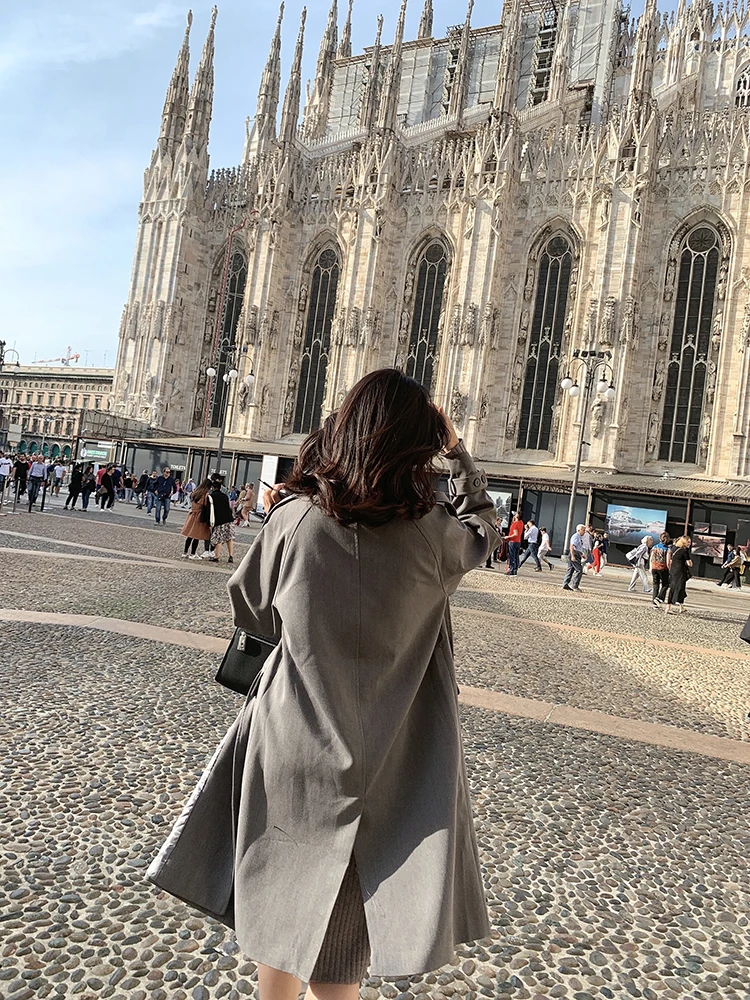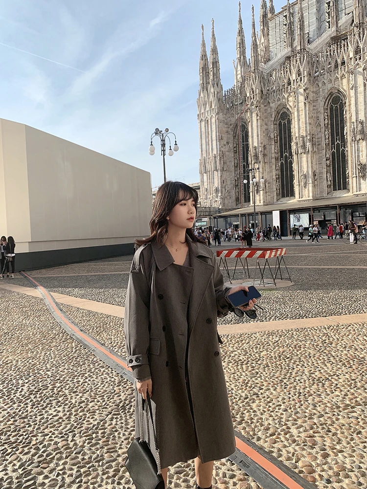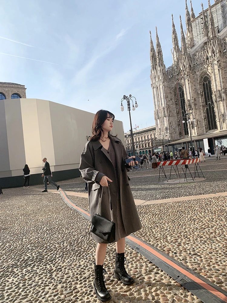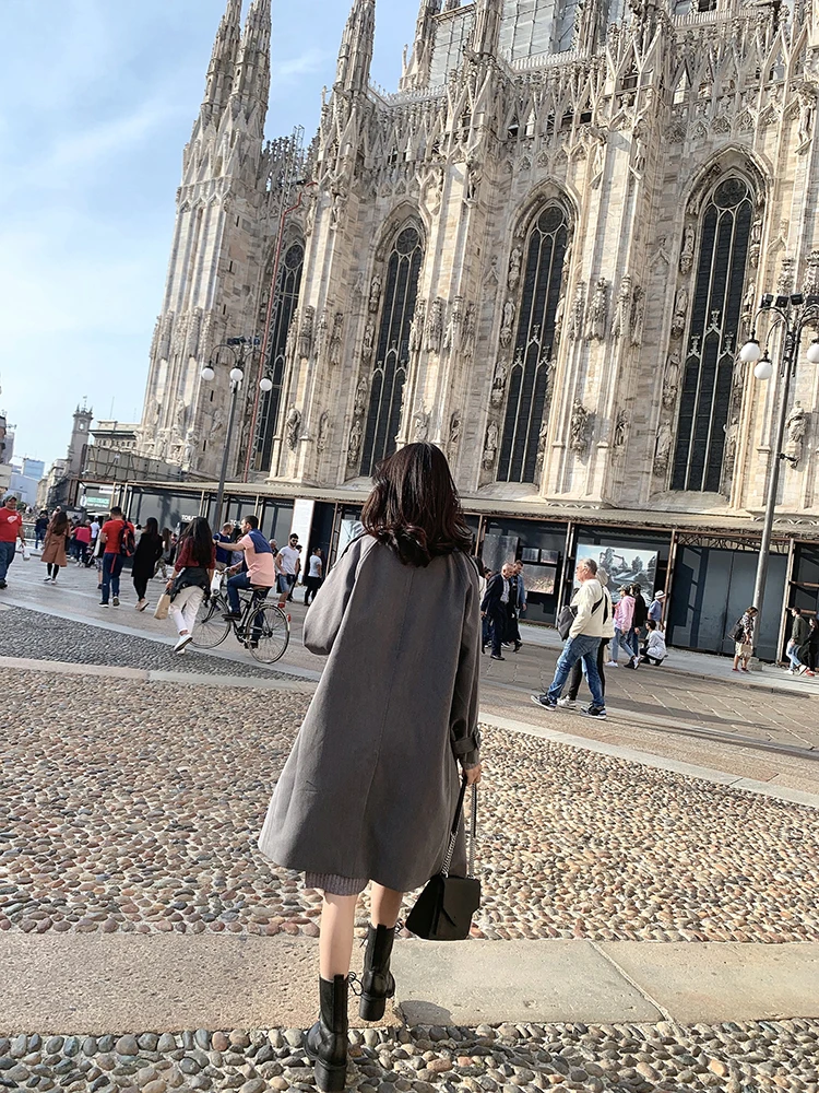 Женское шерстяное однобортное пальто свободное элегантное большого размера в