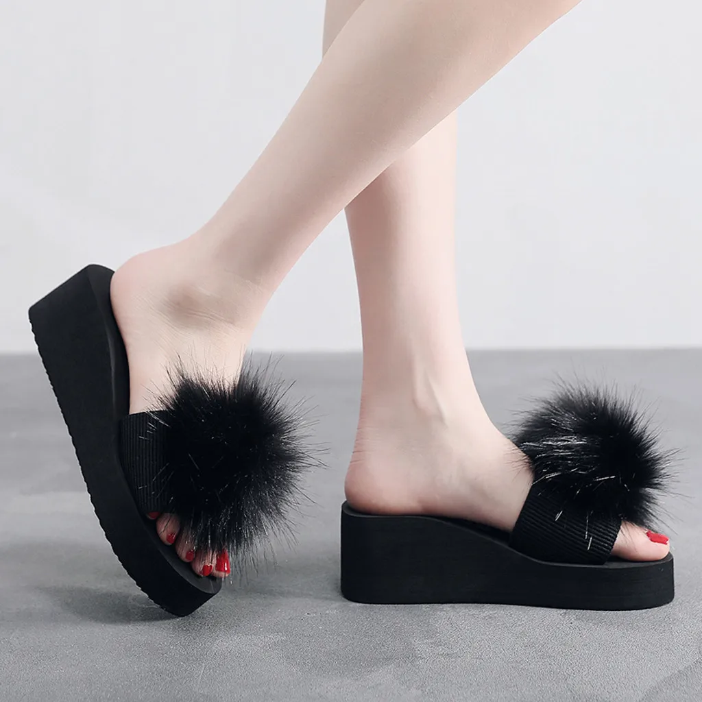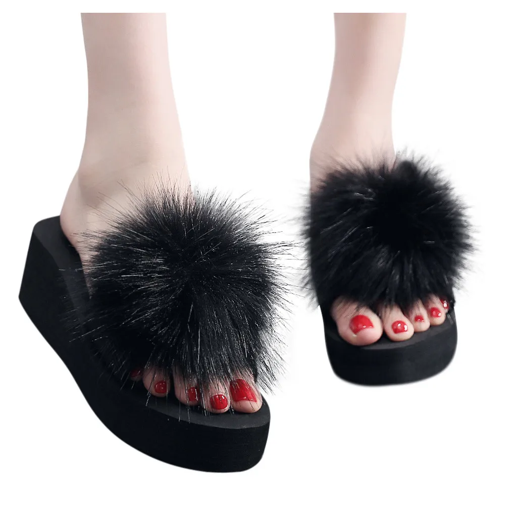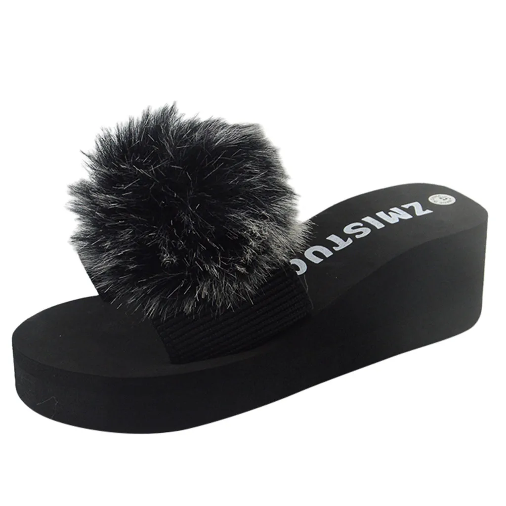 Женская обувь на танкетке; зимние домашние и уличные Нескользящие тапочки; женская домашняя обувь