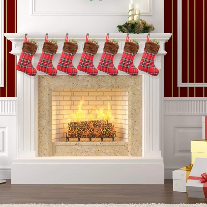 Рождественские чулки, 12 упаковок, маленькие деревенские клетчатые украшения из искусственного меха, украшения для рождественской елки, держатель подарочных карт денежные мешки, праздничные лакомства