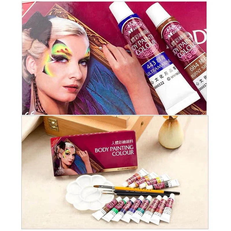 Пигменты для макияжа на Хэллоуин, 12 цветов, карандаш для лица, строчка, Раскрашивание лица, карандаш для макияжа