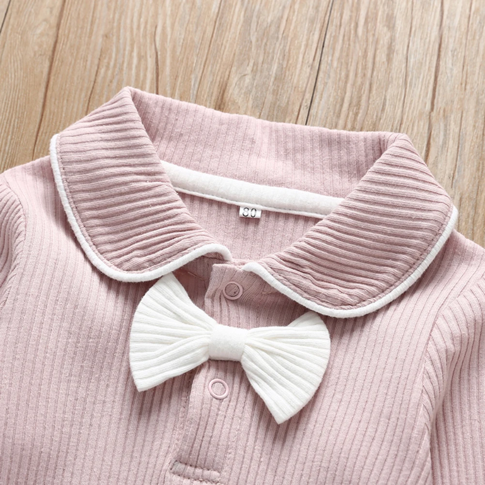 Трикотажная одежда для маленьких девочек комбинезон с сердечками длинным
