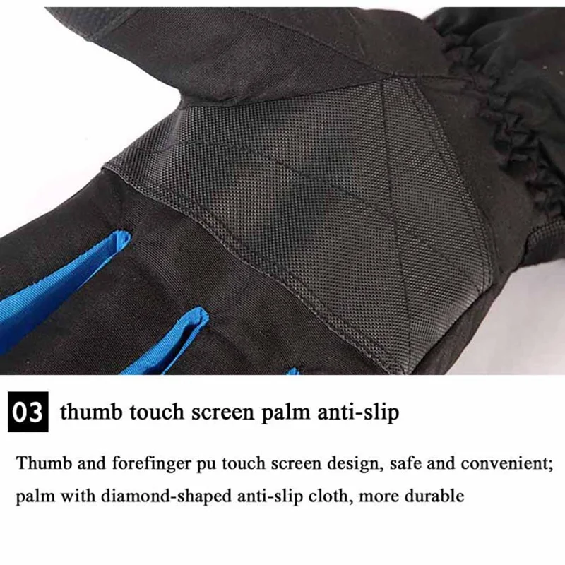 Feature: 1.Made of taslan surface and thermal cotton lining, this pair of thick gloves is thermal, water-resistant, windproof, and comfortable 2.Water-resistant Breathable Shell Fabric---The shell fabric of the winter gloves is coated with the water-resistant breathable TPU layer, which can effectively prevent the hands from wetting by the melting snow in winter, getting rid of stuffiness 3.Friction-resistant Soft PU Leather Palm---The palm and fingers are covered by PU leather to afford a strong and flexible hold when holding the snowboard. What's more, you can use the thumb to wipe your nose without taking off the gloves while exercising in winter 4.Nylon clasp and drawstring, 4-inch cuff---The nylon clasp, adjustable strap, and drawstring wrist belt provide a safe comfortable fit, and the 4-inch cuff brings more safety to keep you away from the snow and cold wind in winter sports 5.Even when it is very cold, this pair of winter gloves can keep your hands warm, along with the soft comfortable lining. So it can do a great job when skiing, snowboarding, hiking, traveling, and so on 6.It is time to go cycling. You put on these full-finger gloves and then hold the handlebar, bringing a sense of comfort Specification: Material:taslan surface,thermal cotton lining Type:Full Finger Size:L Color:Grey/Gray,Blue,Orange,Red,Yellow Theme:Sports Sports Type:Skiing,Cycling Features:Windproof,Water Resistant,Thermal,Touch Screen Total Length:30cm Palm Width:12cm Palm Circumference:26cm Middle Finger Length:10cm Packaged:Opp bag Note: Due to the screen difference, the color may be a little different from what you expect, please allow it Packaged include: 1 pair of gloves