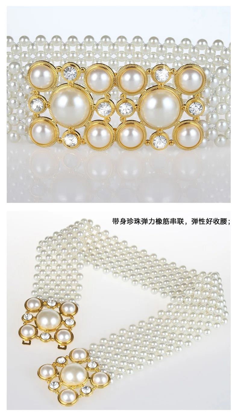 58 мм широкий женский перламутровый эластичный пояс-цепочка пояс для талии Женская юбка со стразами украшенная белая талия одежда пояс с жемчугом