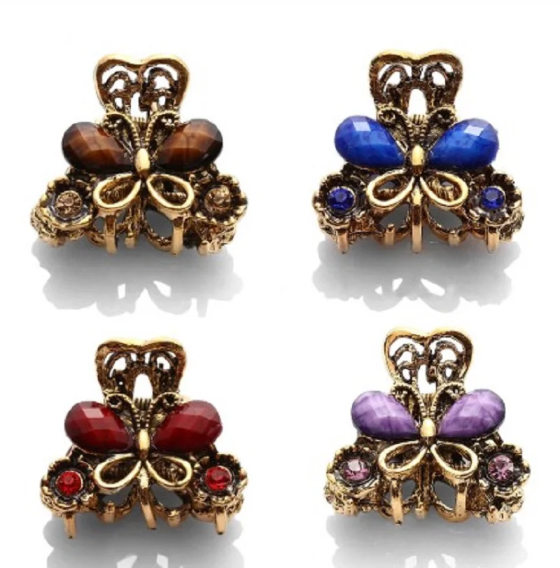 Женская мода коготь для волос Ретро Стильный зажим для волос 100% новый и высокое качество Материал: металл, хрусталь Пол: женщин Размеры: 2,8*2,5 см Цвет: синий/красный/фиолетовый/коричневый
