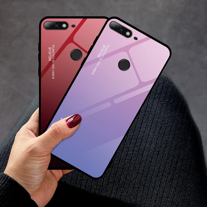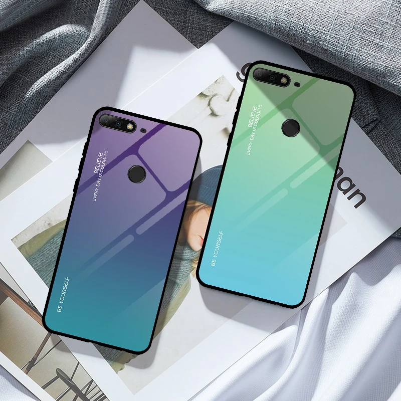 Градиент стекло чехол для телефона Huawei Honor 7A ру 5,45 7A Pro 7C Pro 5,99 закаленное стекло чехол для Honor 7A 7C чехол на заднюю панель