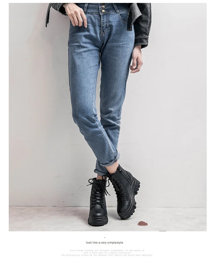 Женские ботильоны из натуральной кожи черные кроссовки на плоской подошве с