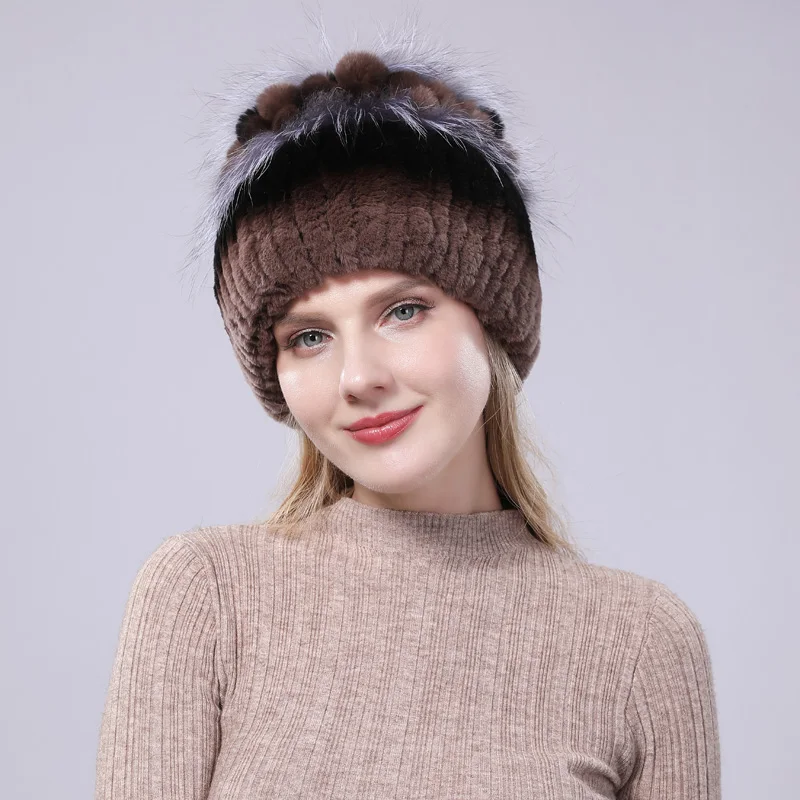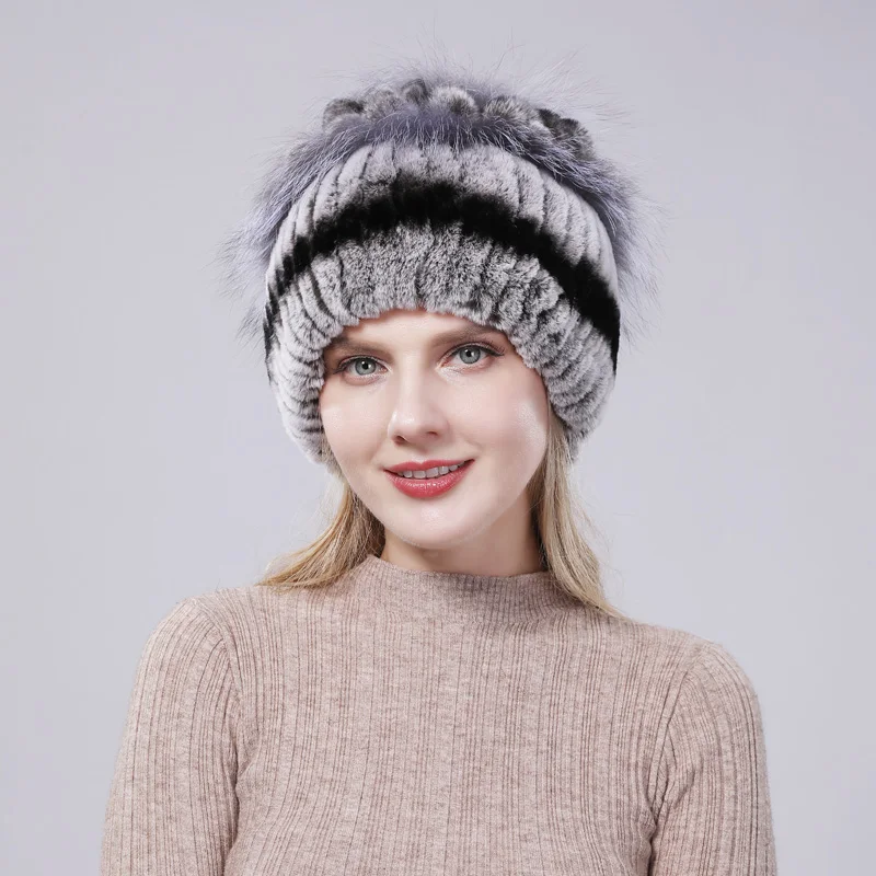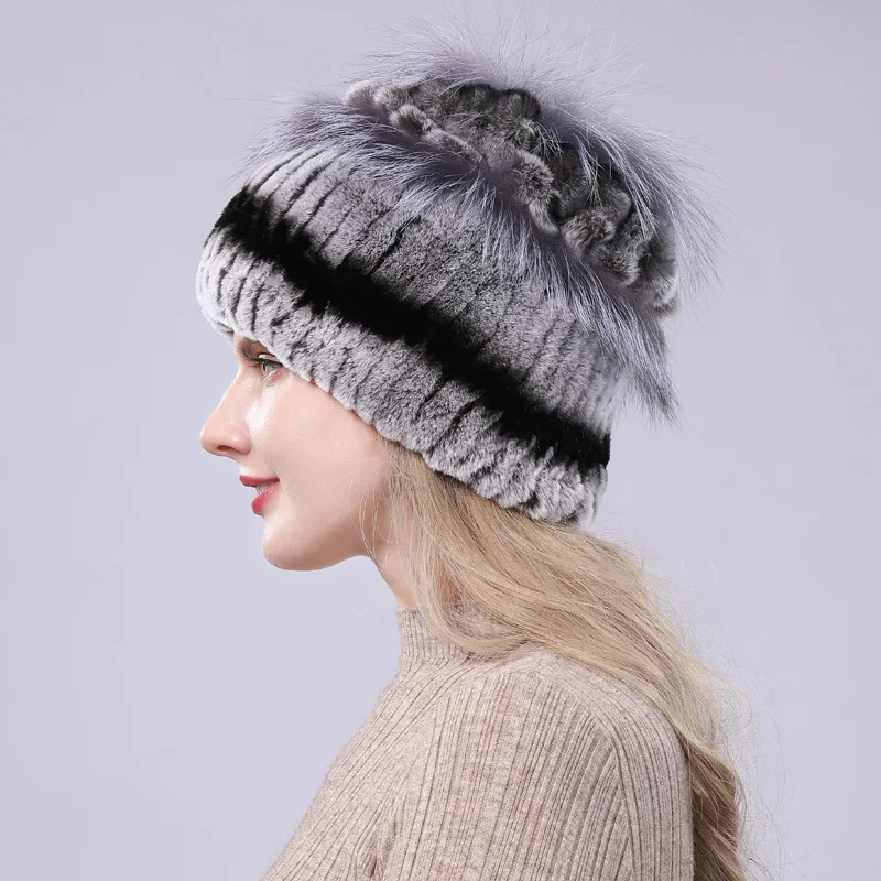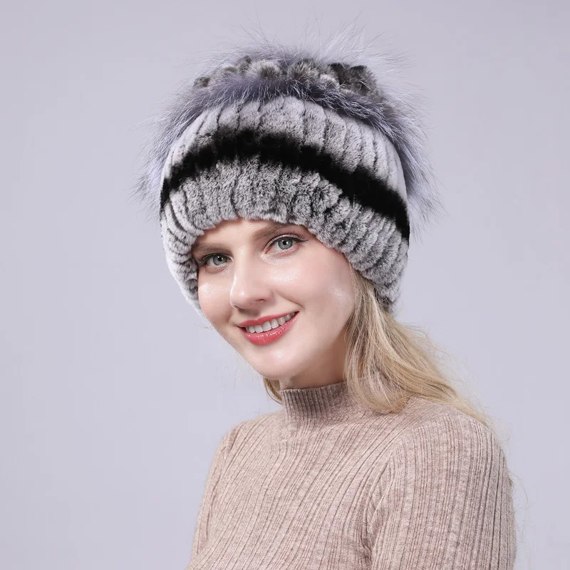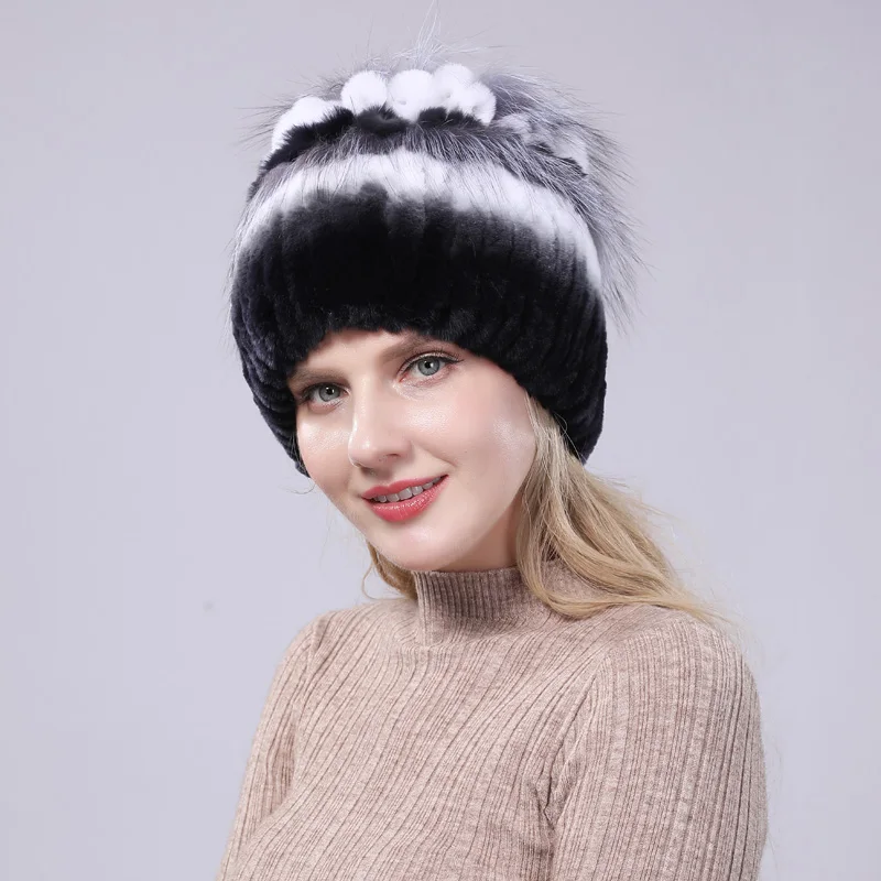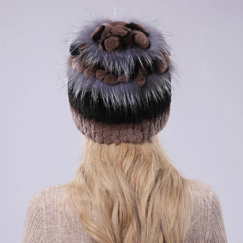 New Women Striped&Floral Real Natural Rex Rabbit Fur Hats 100% Genuine Cap Lady Winter Warm Caps | Аксессуары для одежды
