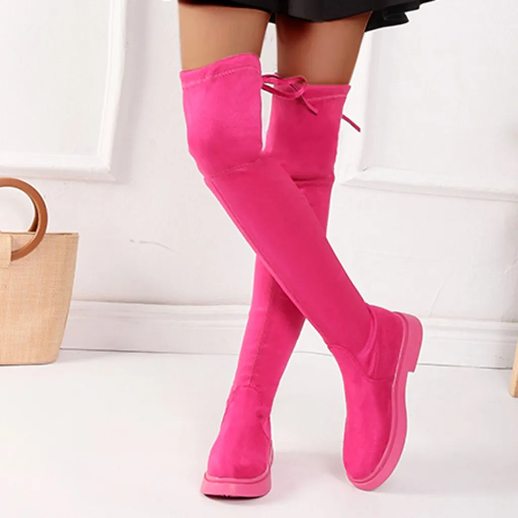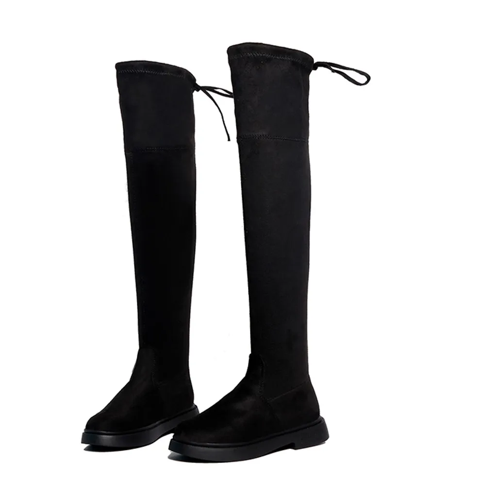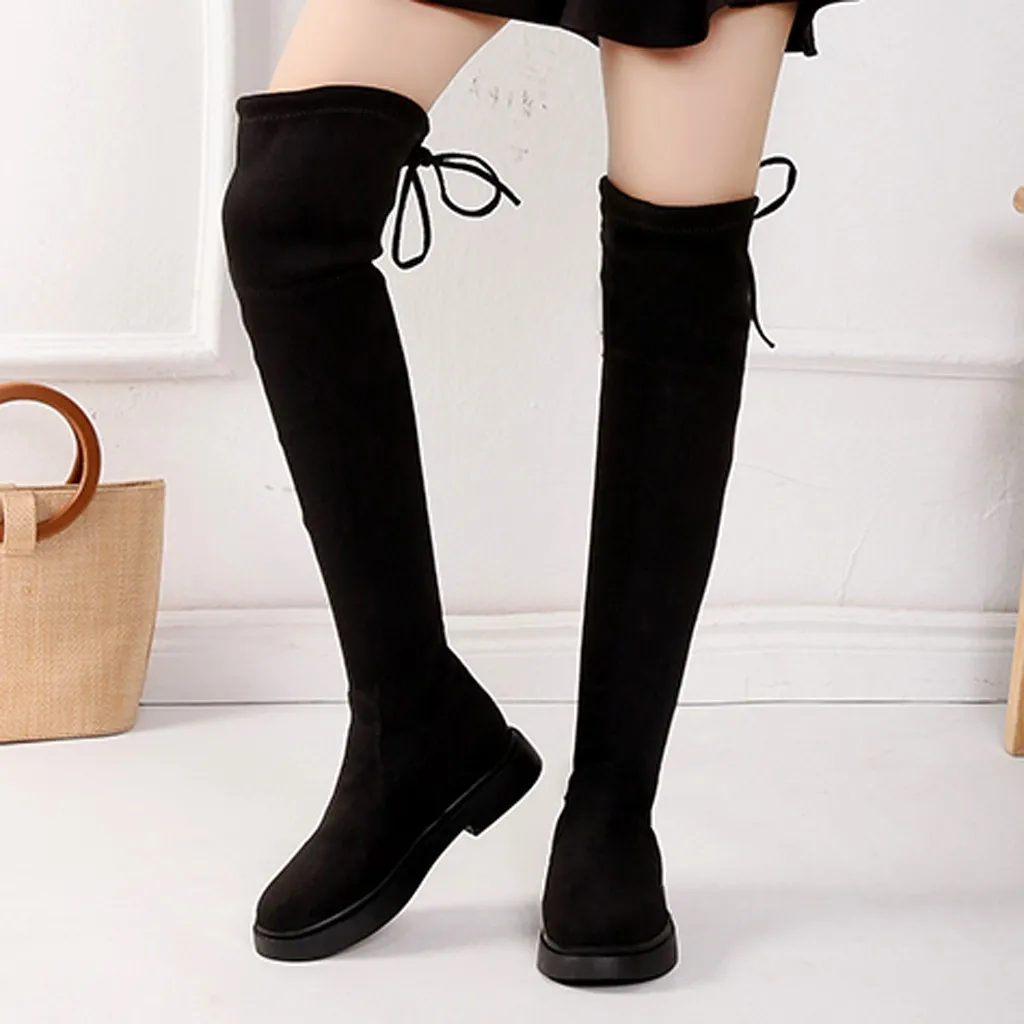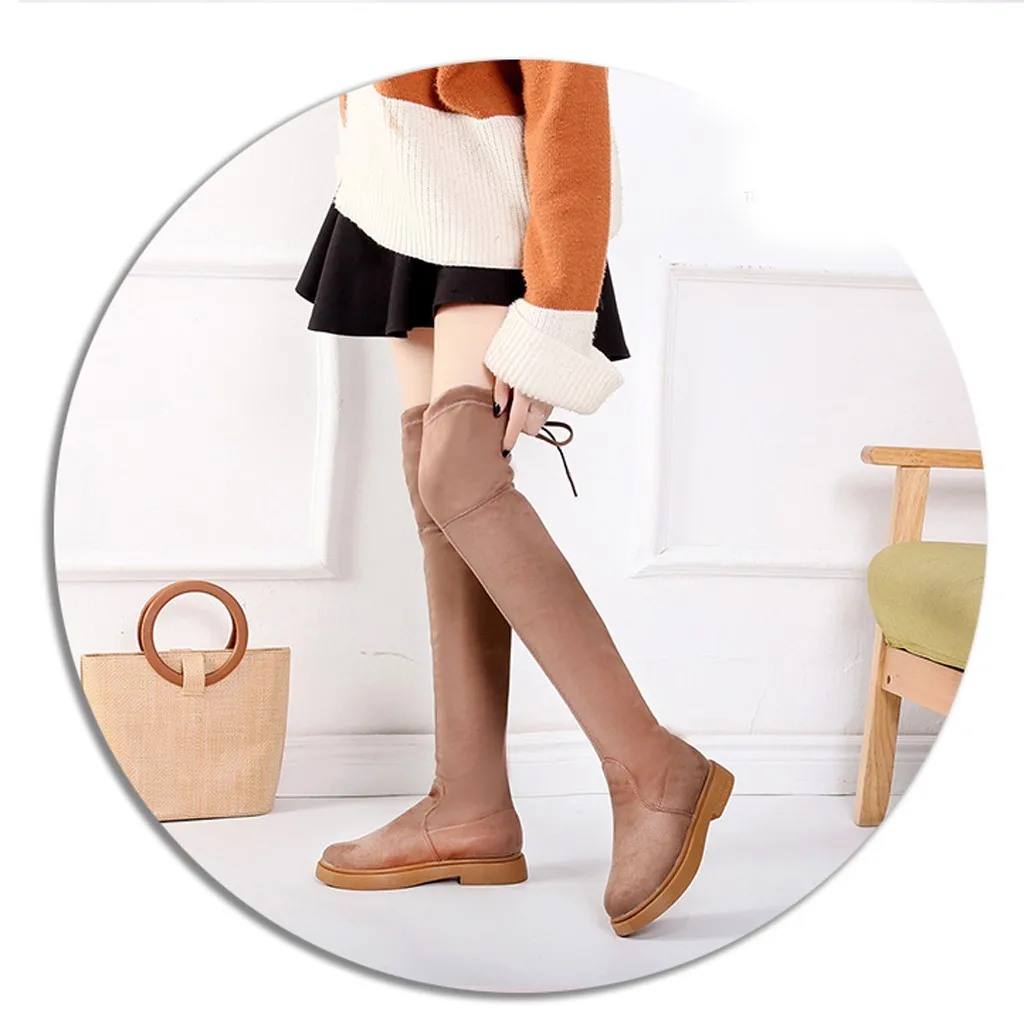 Женские ботфорты на шнуровке; обувь на плоской подошве с круглым носком; Повседневные высокие сапоги-трубы