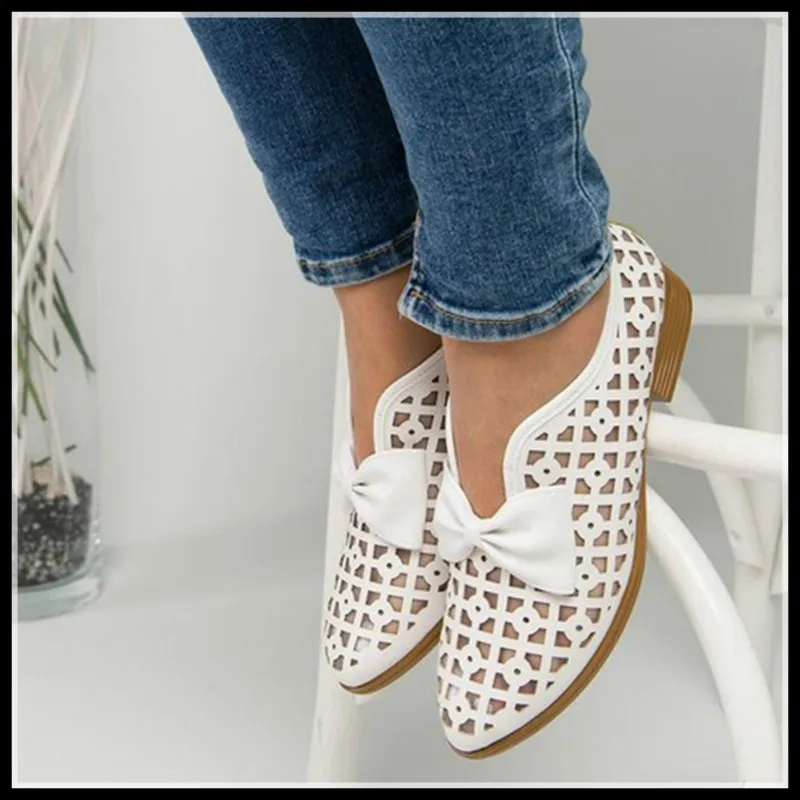HKXN 2020 Новая Летняя женская обувь сандалии с бантом женская повседневная обувь без шнуровки на низком каблуке с острым носком и вырезами большой размер 35-43 T