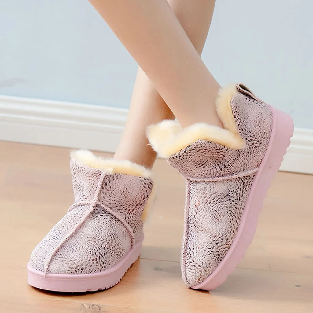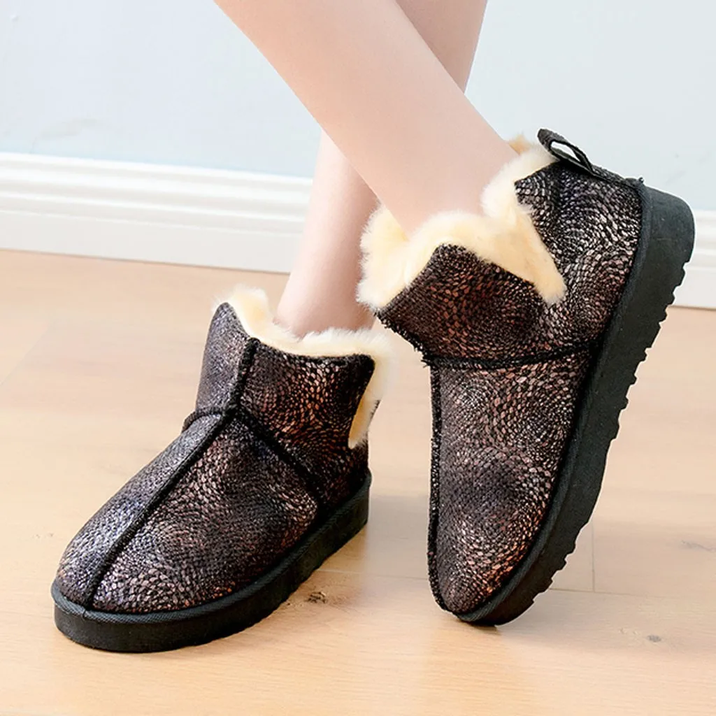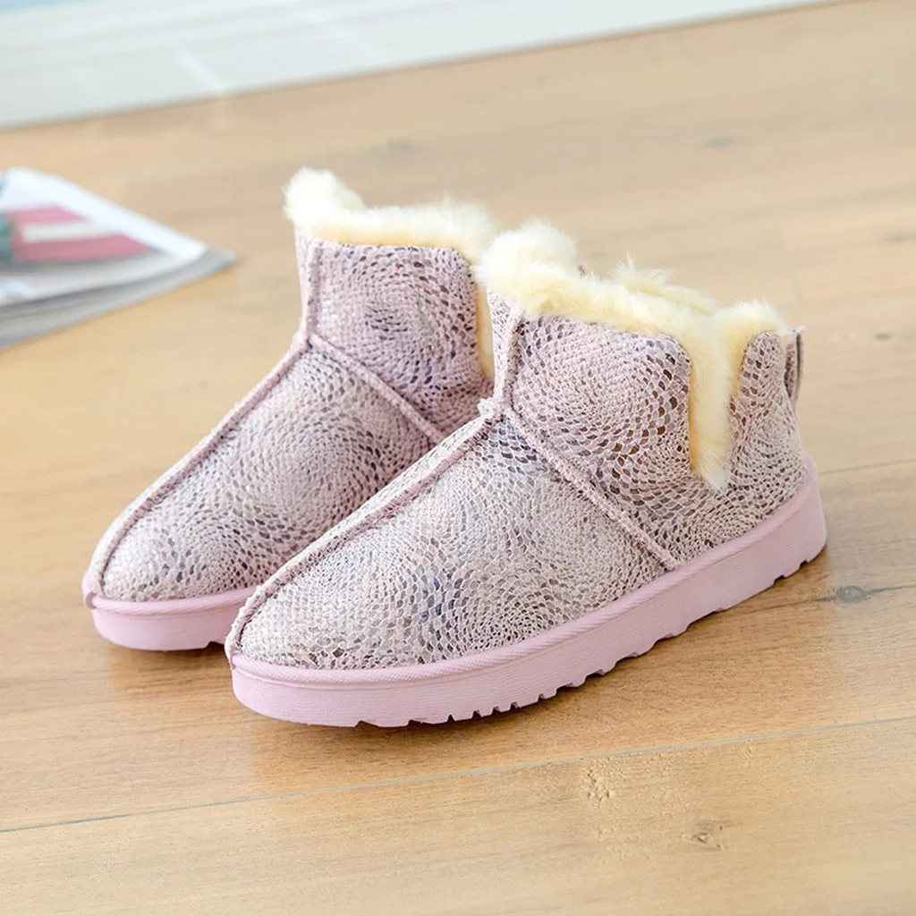 Женские зимние ботильоны без шнуровки на плоской подошве Теплые повседневные короткие зимние ботинки