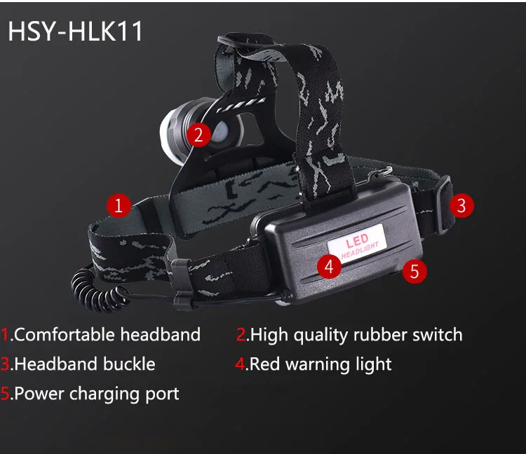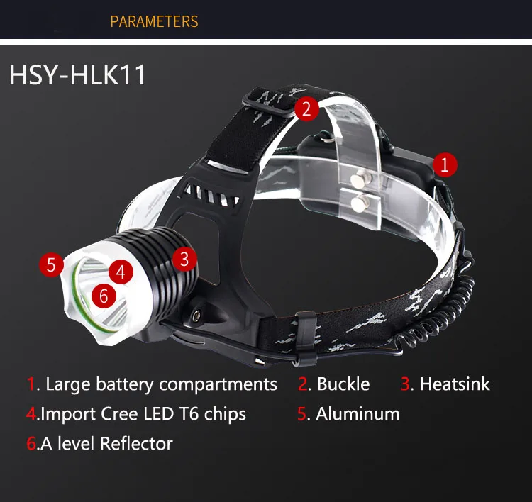 1. Регулируемый налобный фонарь, 1x Cree XM-L T6, срок службы может быть до 100000 часов.