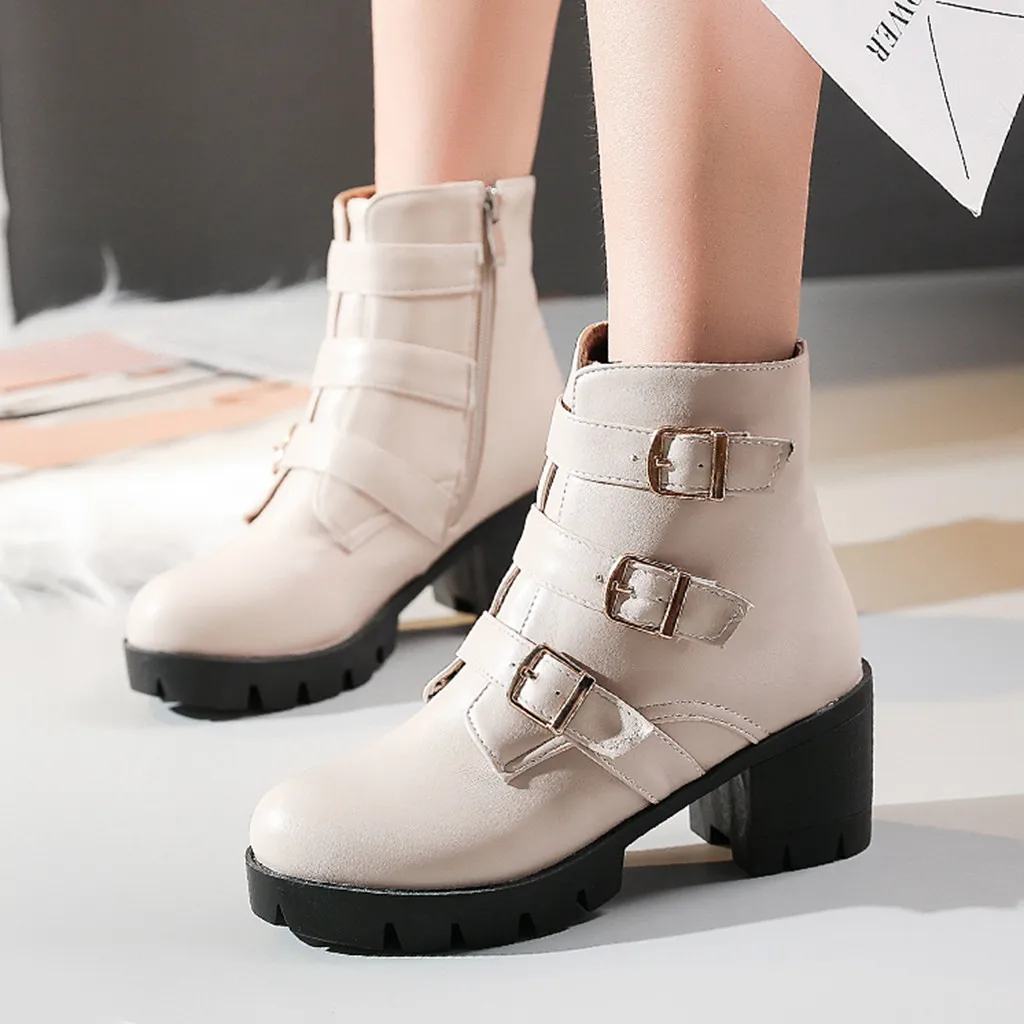 Модные однотонные ботинки на молнии с круглым носком; винтажные женские ботинки на квадратном каблуке