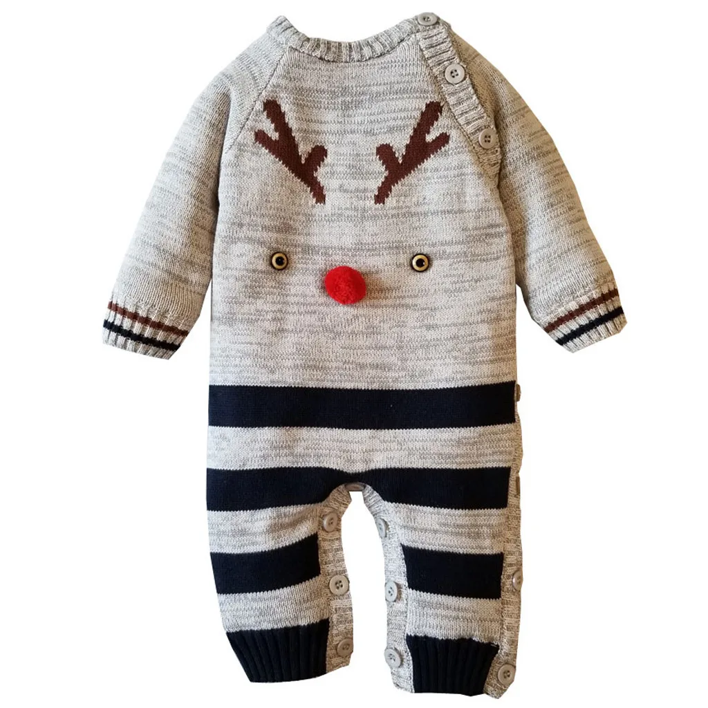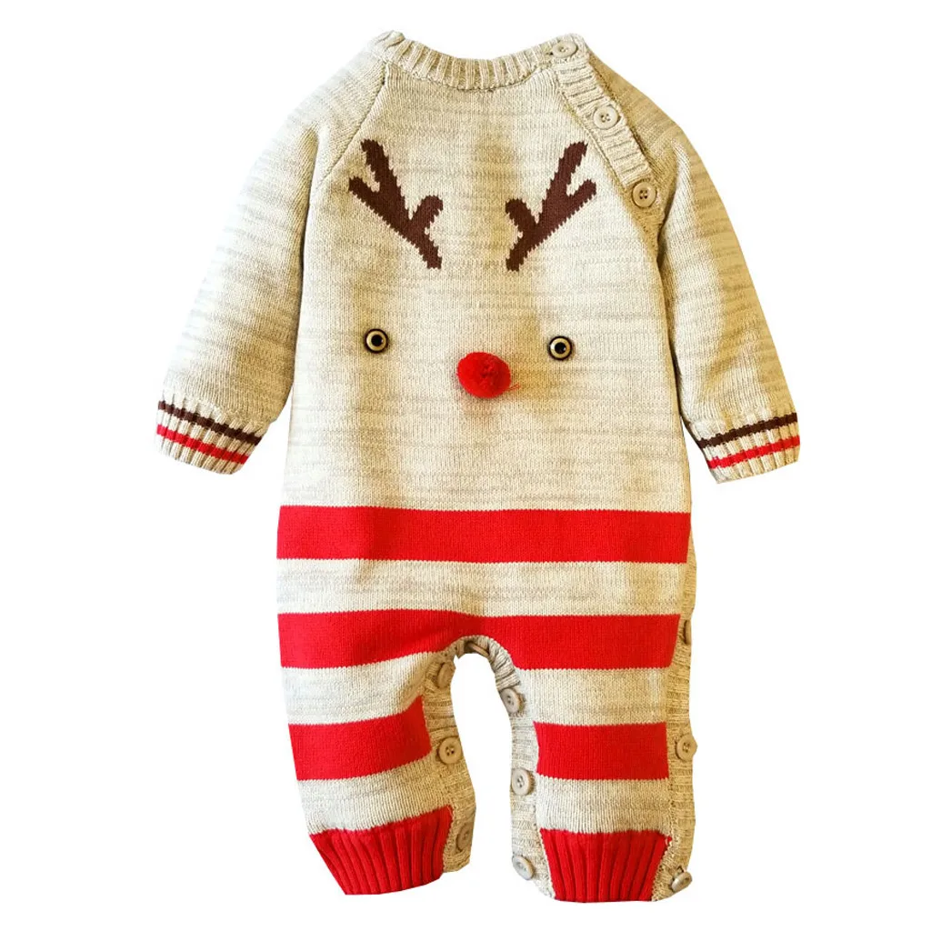 Рождественский плюшевый свитер с оленем для новорожденных девочек и мальчиков; Вязаный комбинезон; комбинезоны