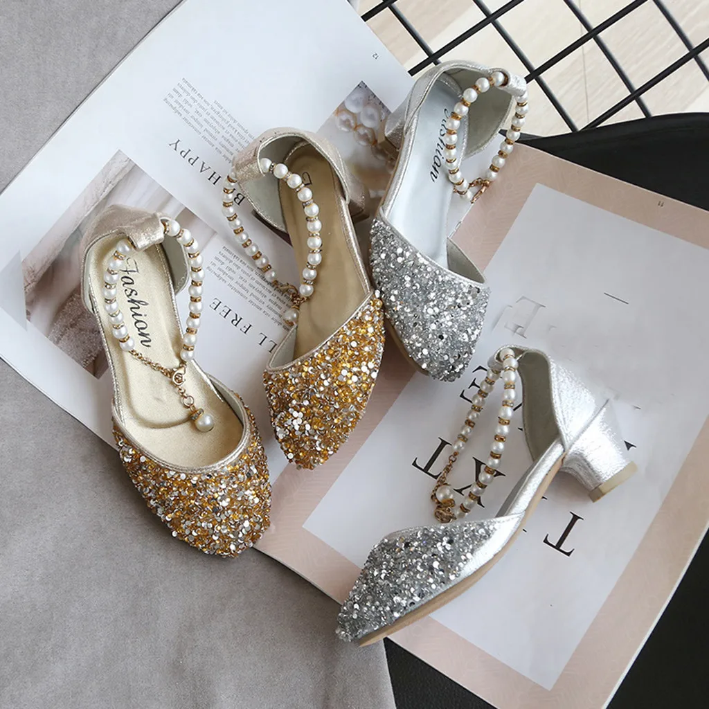 Toddler Infant Kids Baby Girls Pearl Fashion Sequins Single Princess Shoes