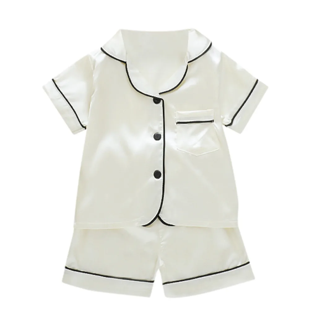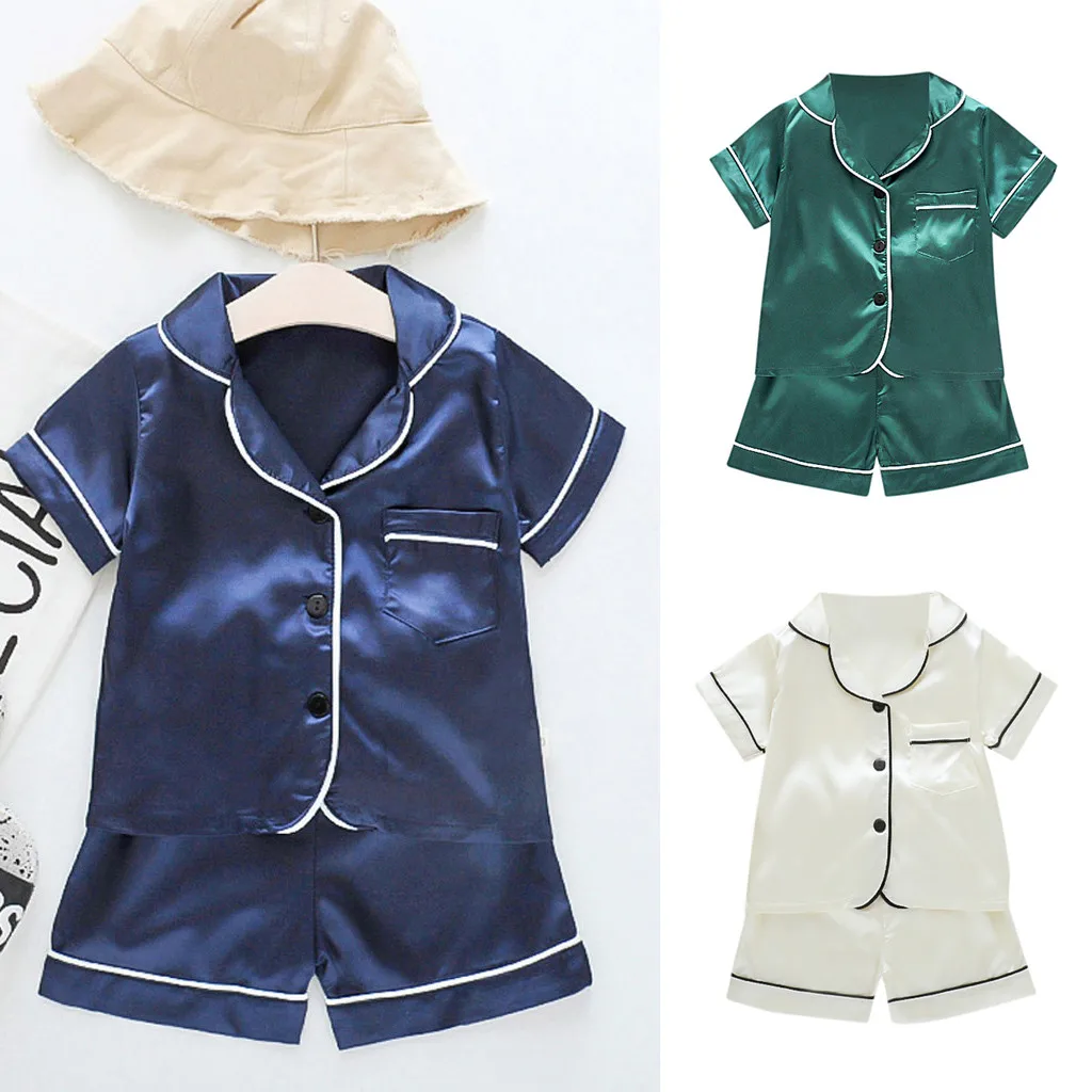 Toddler Kids Baby Boys Girl Solid Pajamas Sleepwear T shirt Shorts Clothes Set