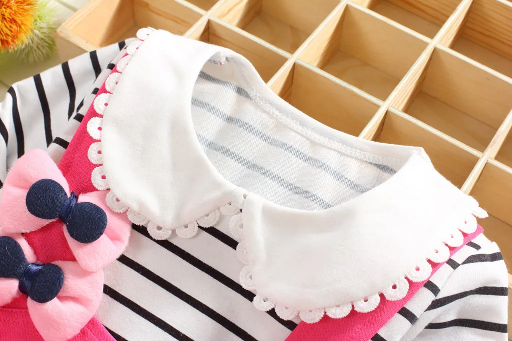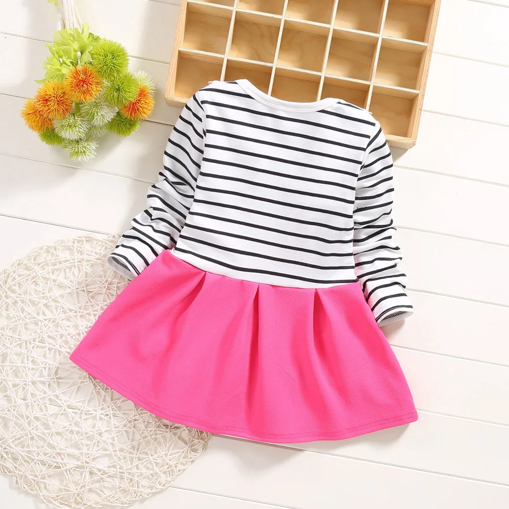 Платье в полоску с бантом и цветочным принтом для маленьких девочек повседневная одежда