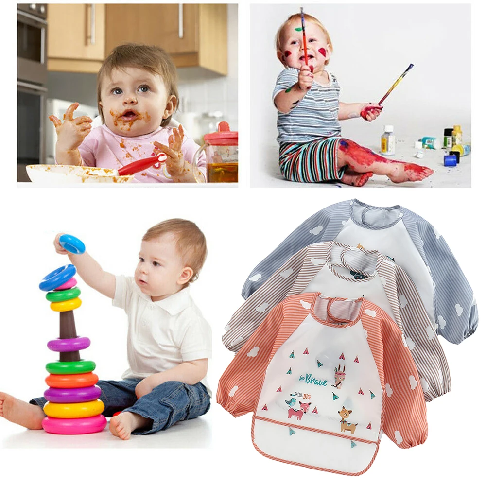 Features: Material: Polyester Color:Orange/Gray/Brown Pattern:As The Picture Show Size:One Size What You Get: 1PC or 3PC Waterproof Long Sleeve Bib Note: There is 2-3% difference according to manual measurement. please check the measurement chart carefully before you buy the item. Please note that slight color difference should be acceptable due to the light and screen.