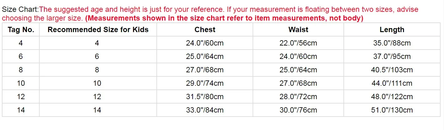 Таблица размеров:Предполагаемый возраст и рост указаны только для справки. Если под ваши замеры подходят два размера, мы рекомендуем выбрать больший размер.(Измерения, показанные в таблице размеров, относятся к измерениям товара, а не к телу)