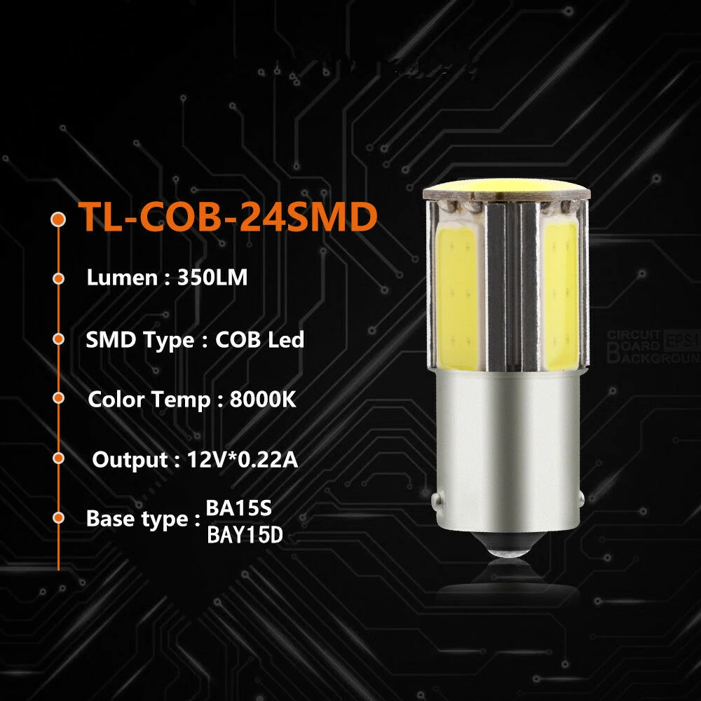 Характеристики: * Тип цоколя: поворотный свет * Напряжение: 12 В постоянного тока * Выход: 0,22 А @ 12 В * Люмен: 420 лм * Цвет: белый 8000 К, красный, янтарный * светодиодный чип: COB 24SMD фитинг:> заменяет шток лампы: 1156 BA15S Sockel (P21W): 1073 1095 1141 1156 1156A 1156NA 1195 12088 1295 1295NA 199 2396 3497 631 7506 93 97 97A 97NA 1157 BAY15D заменяет склад лампы: 1016 1034 1142 1157 1157A 1178A 1196 2057 2057A 2357 2357A 2357NA 2397 3496 7528 94> Применение: общее применение для Поворотная сигнальная лампа, фонарь заднего хода, стоп-сигнал, оснащены фарами, задними фонарями, Задний свет, световой индикатор, стоп-сигнал, резервные огни, угловой свет, парковочная лампа, боковой габаритный фонарь, наружные огни, общее использование для автомобиля, грузовика, мотоцикла, скутера, прицепа, RV, лодка, морская, и т. Д. Посылка в том числе: 2 шт. COB 24SMD поворотные светодиодные лампы