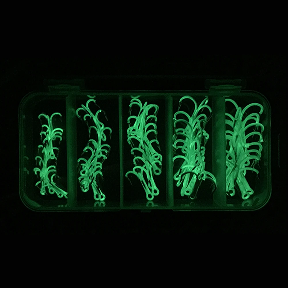 Тройные Крючки со светящимся покрытием, будут хорошо заменены крючки для ваших приманок и помогут вам получить больше рыбы к лодке!