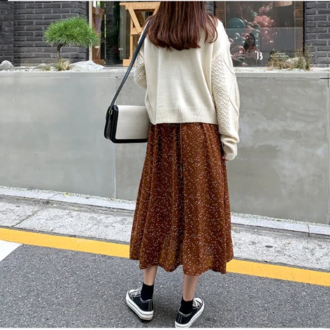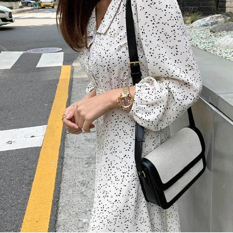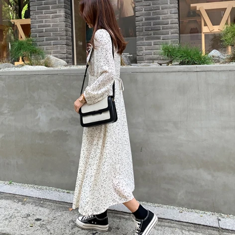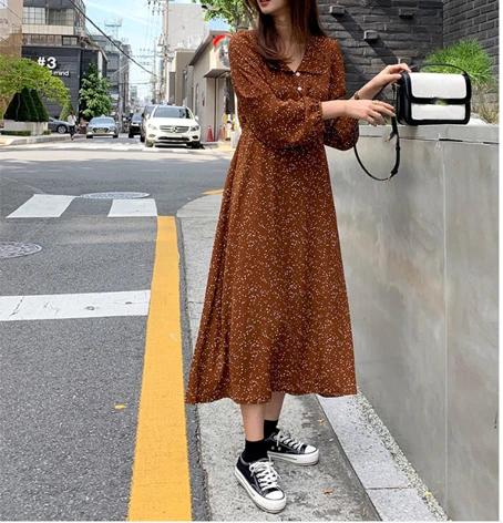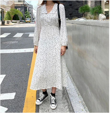 Женское ТРАПЕЦИЕВИДНОЕ платье в горошек размера плюс, свободное платье средней длины с длинным рукавом и отложным воротником, модель D90402K на осень, 2019