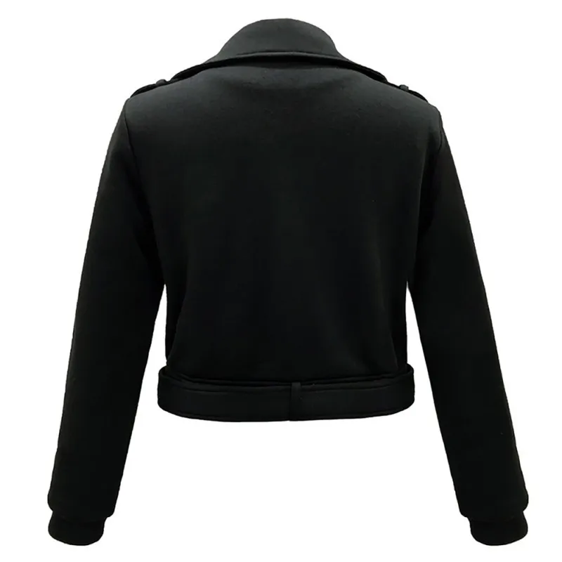 2. Длинный рукав, отложной воротник, сплошной цвет, диагональная молния.