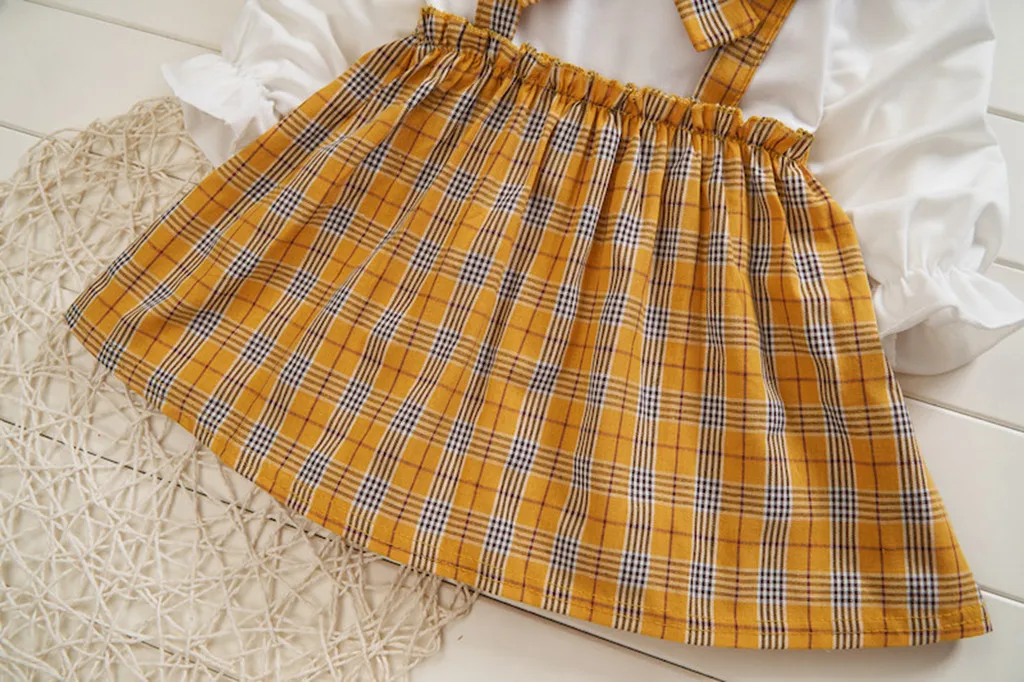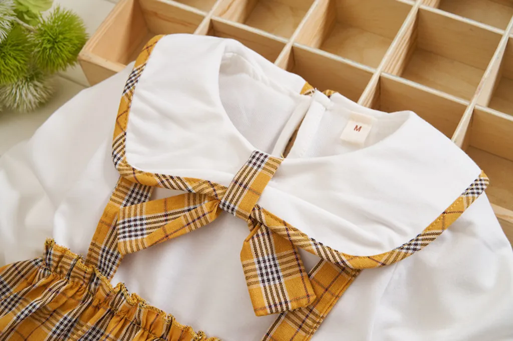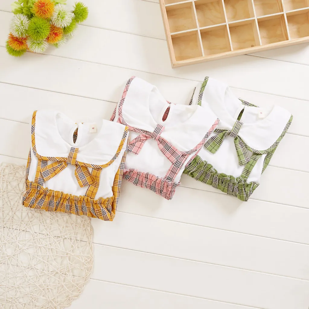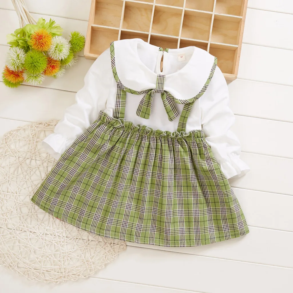 Лоскутное клетчатое платье для маленьких девочек с кукольным воротником и бантом Повседневная одежда