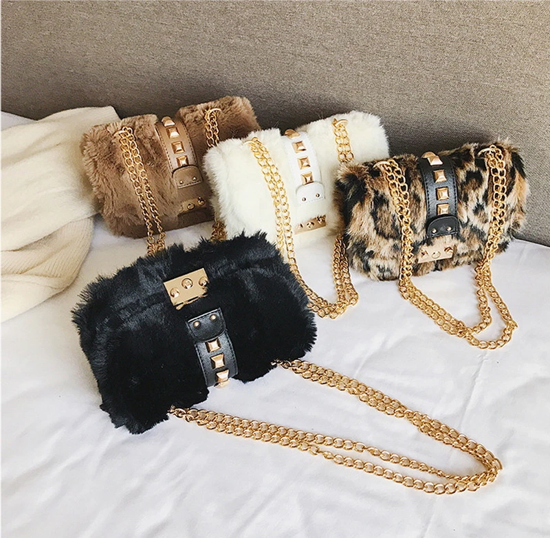 Mododiino, леопардовая сумка через плечо из искусственного меха, женская сумка на плечо с цепочками, женская сумка-мессенджер с заклепками, мини-сумка с клапаном DNV1244