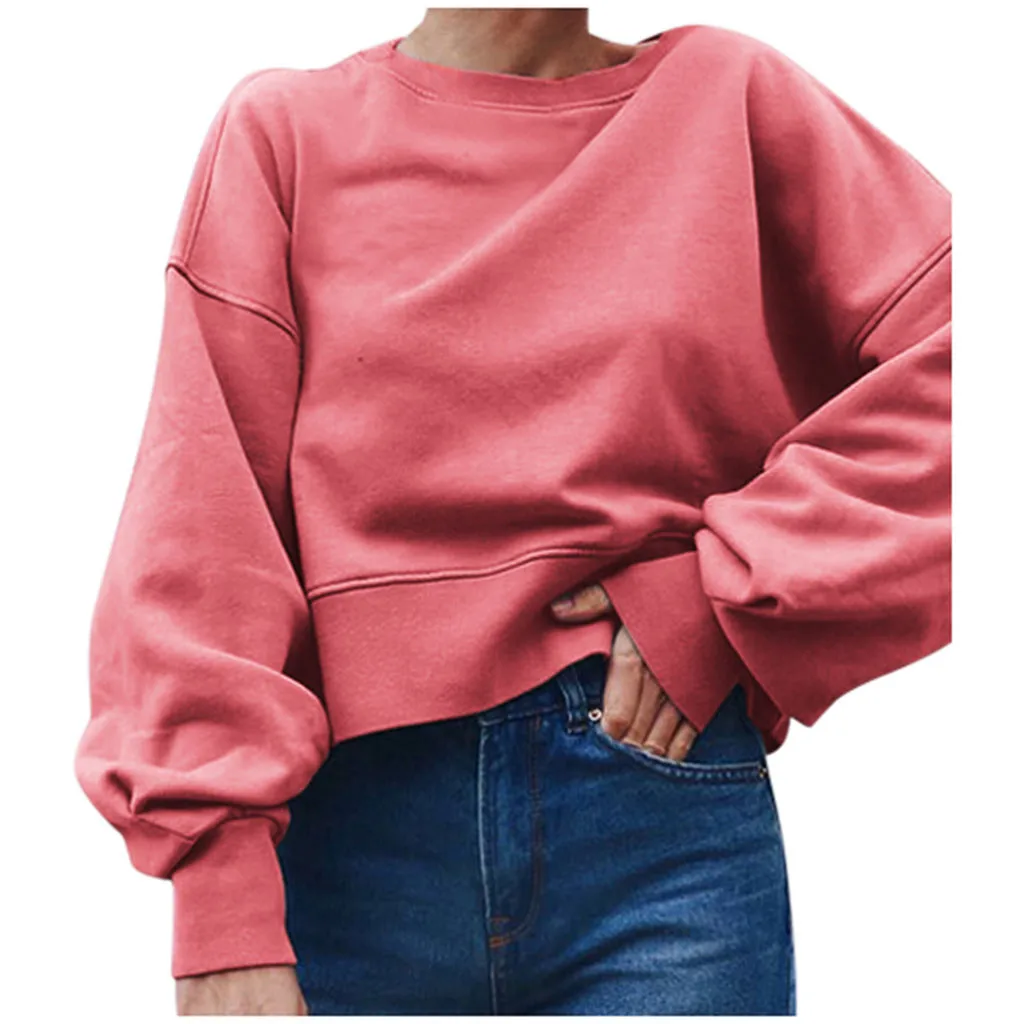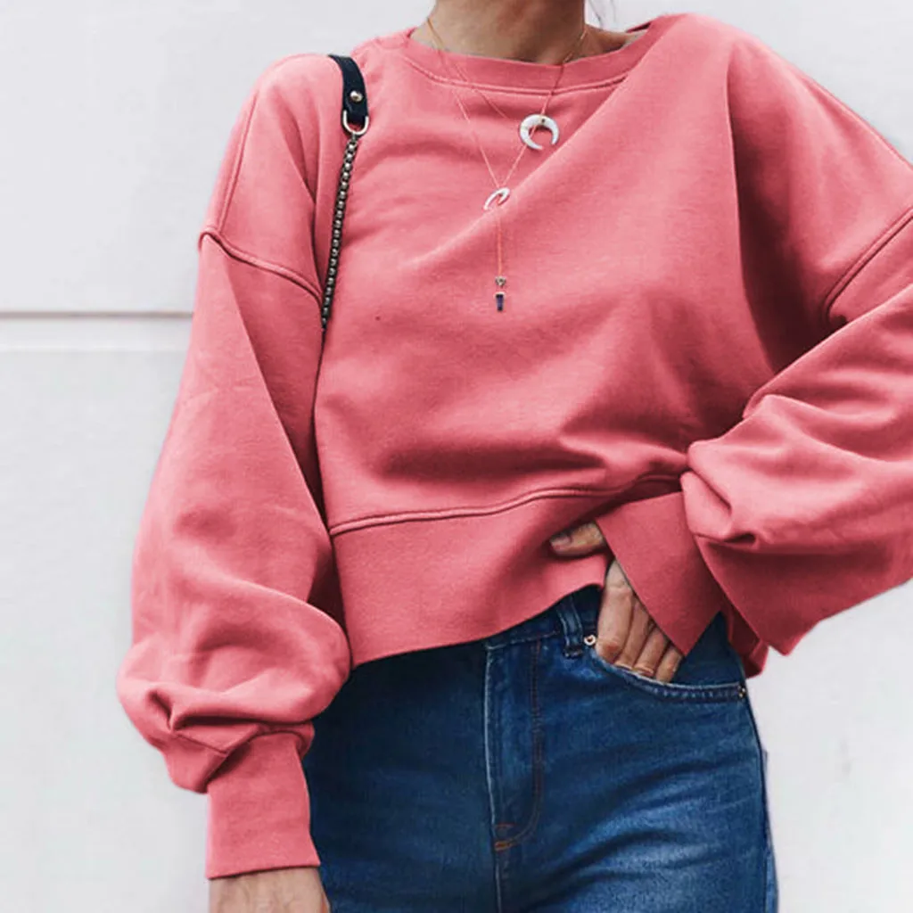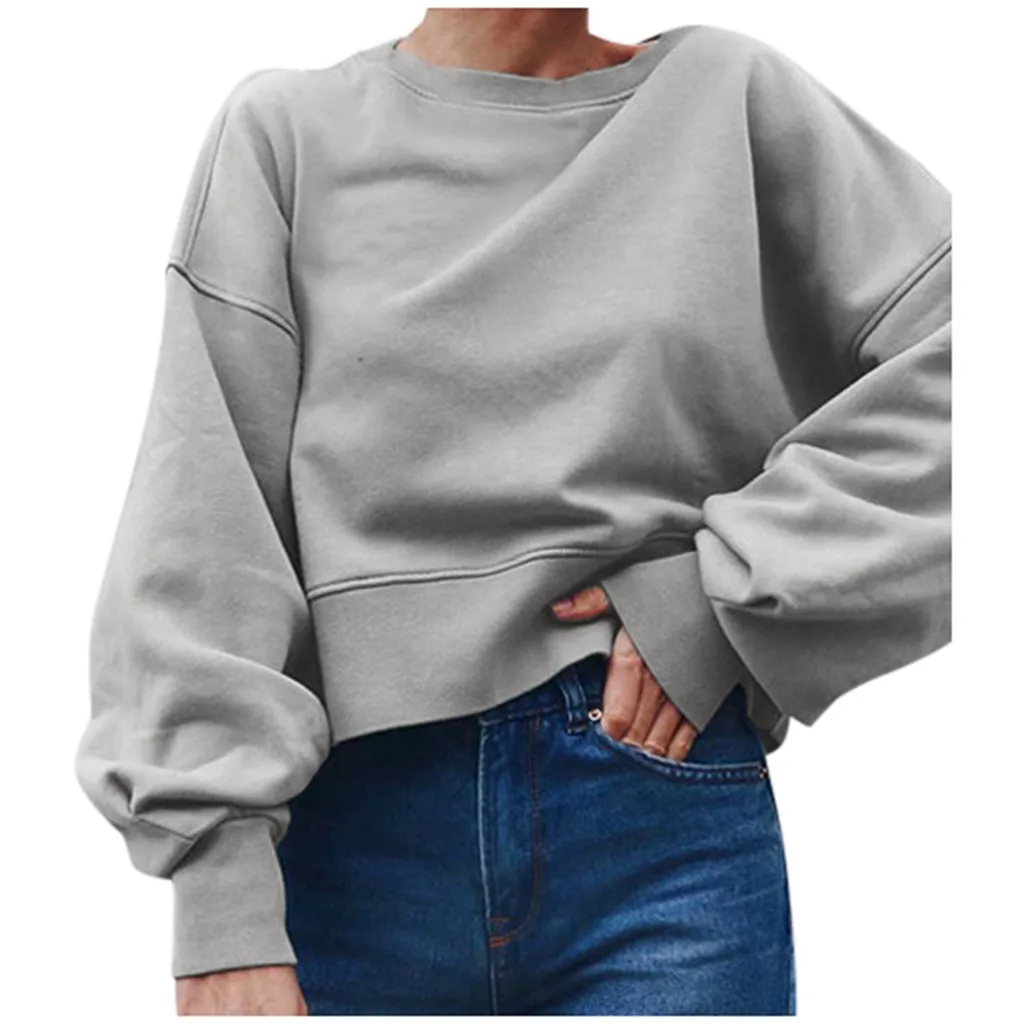 Женская мода с длинным рукавом o-образным вырезом сплошной свитер с капюшоном Топ Блузка