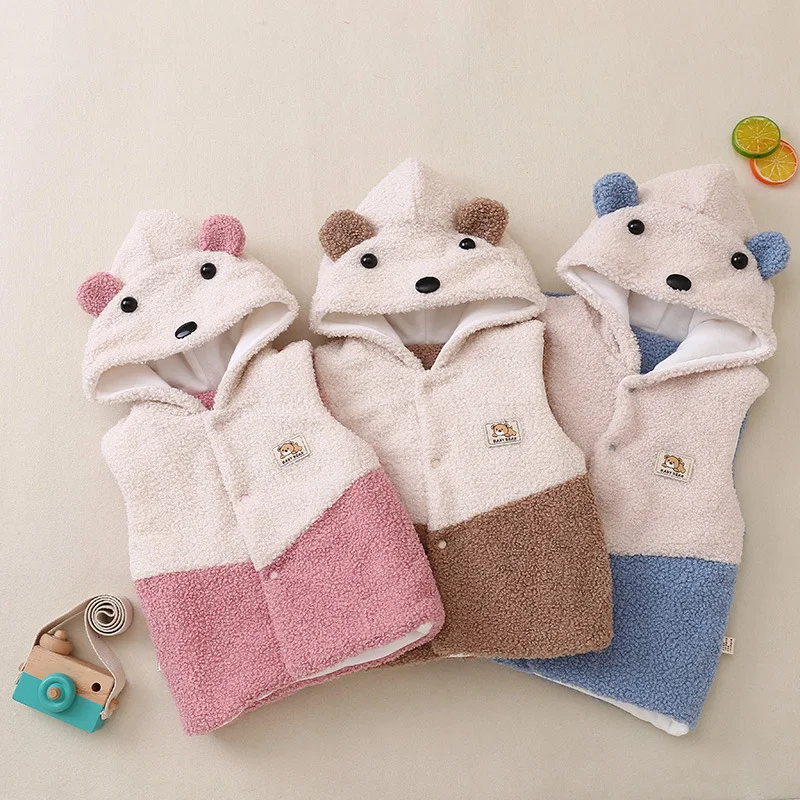 Halilo жилет из искусственного меха с капюшоном для маленьких девочек, теплая осенняя одежда для младенцев, жилет унисекс для мальчиков и девочек