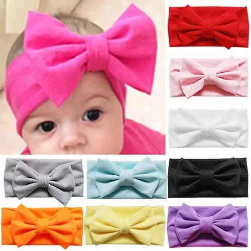 Милая однотонная эластичная повязка на голову с бантом для маленьких детей, аксессуар для волос из однотонного материала, изготовленный из эластичного материала, с бантом, который является прекрасным аксессуаром для волос для детей.