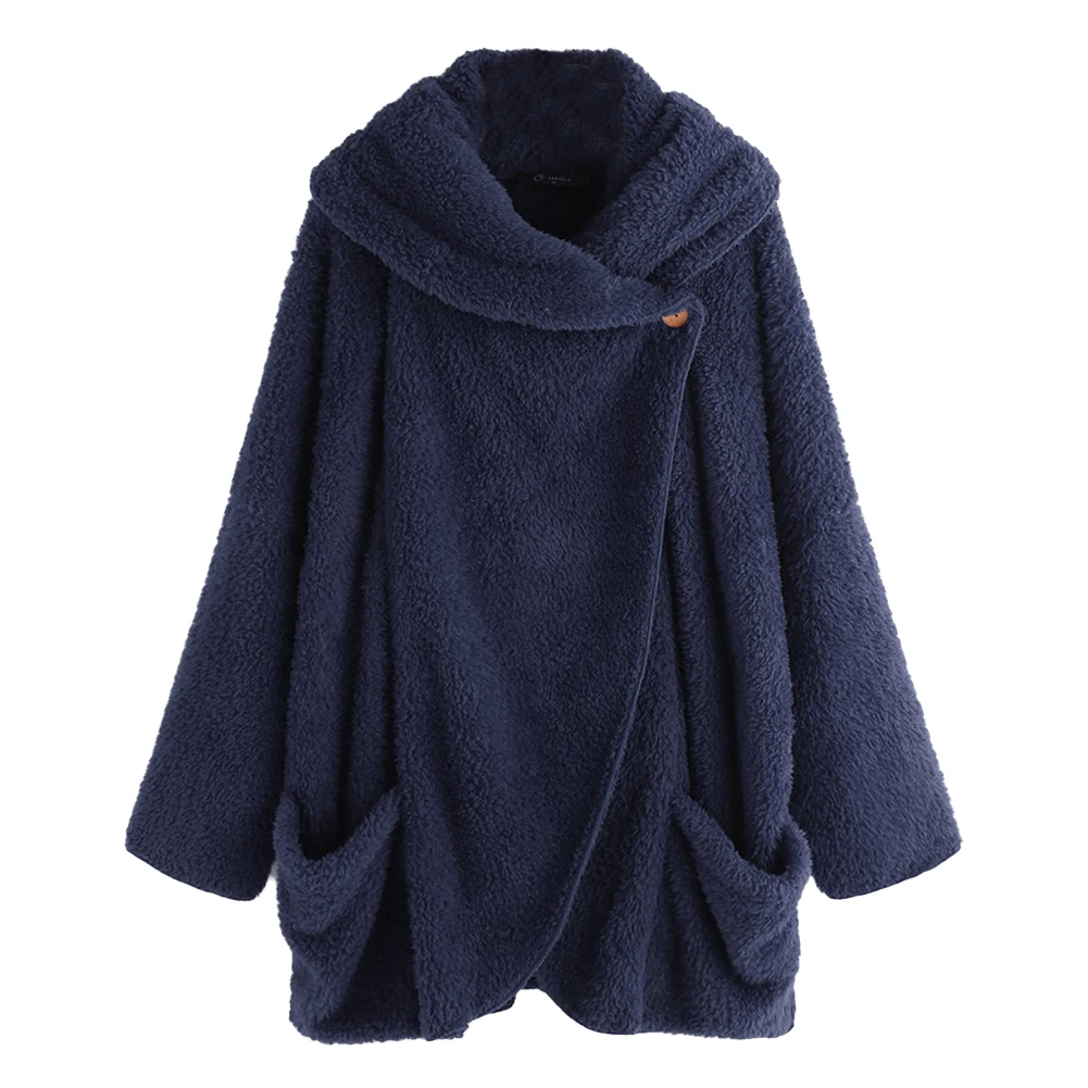 Мода женщин сплошной цвет длинный рукав летучая мышь карман лацкан кардиган пончо пальто
