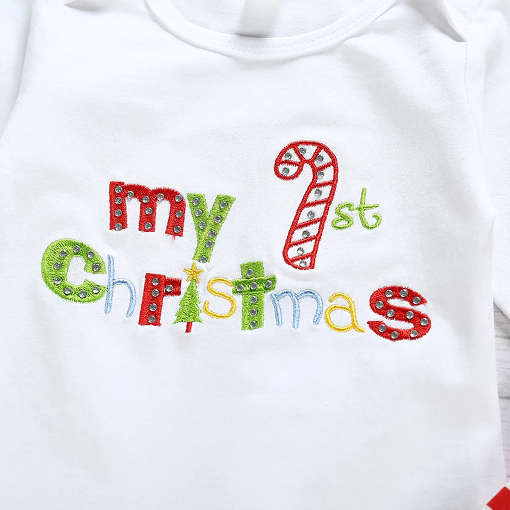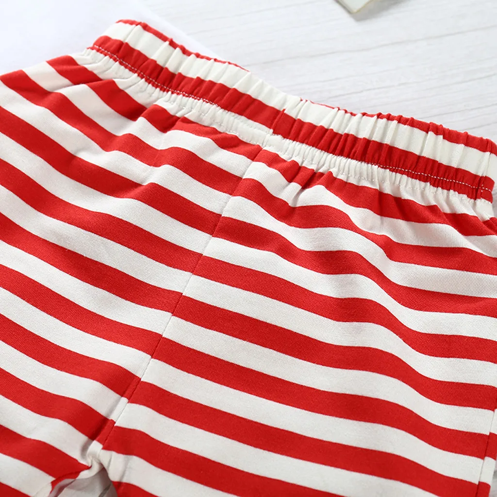 Рождественская футболка с надписью для новорожденных мальчиков и девочек, штаны в полоску, комплект одежды