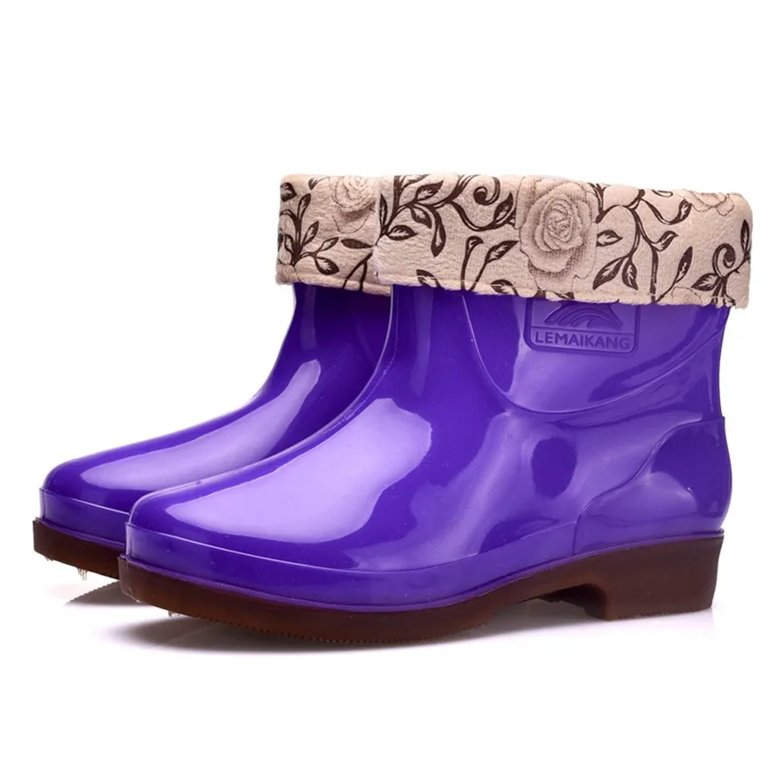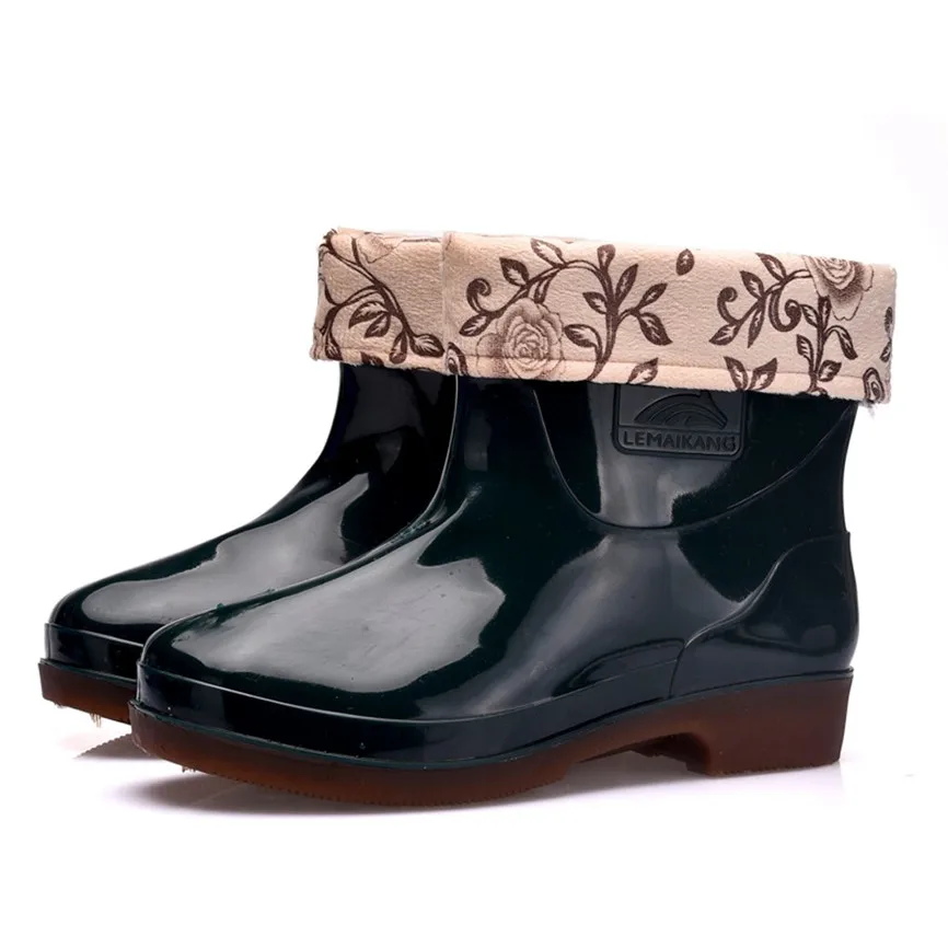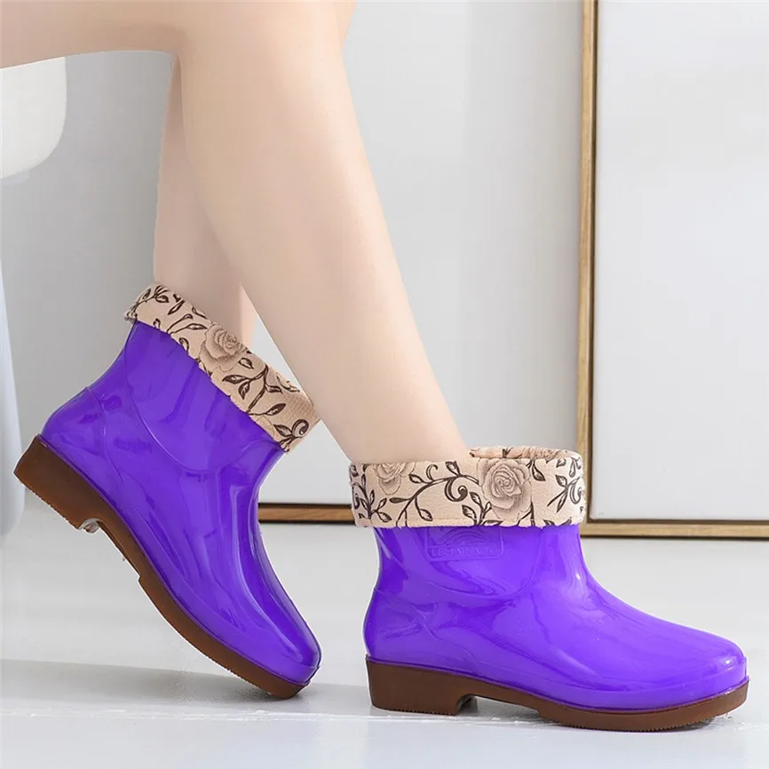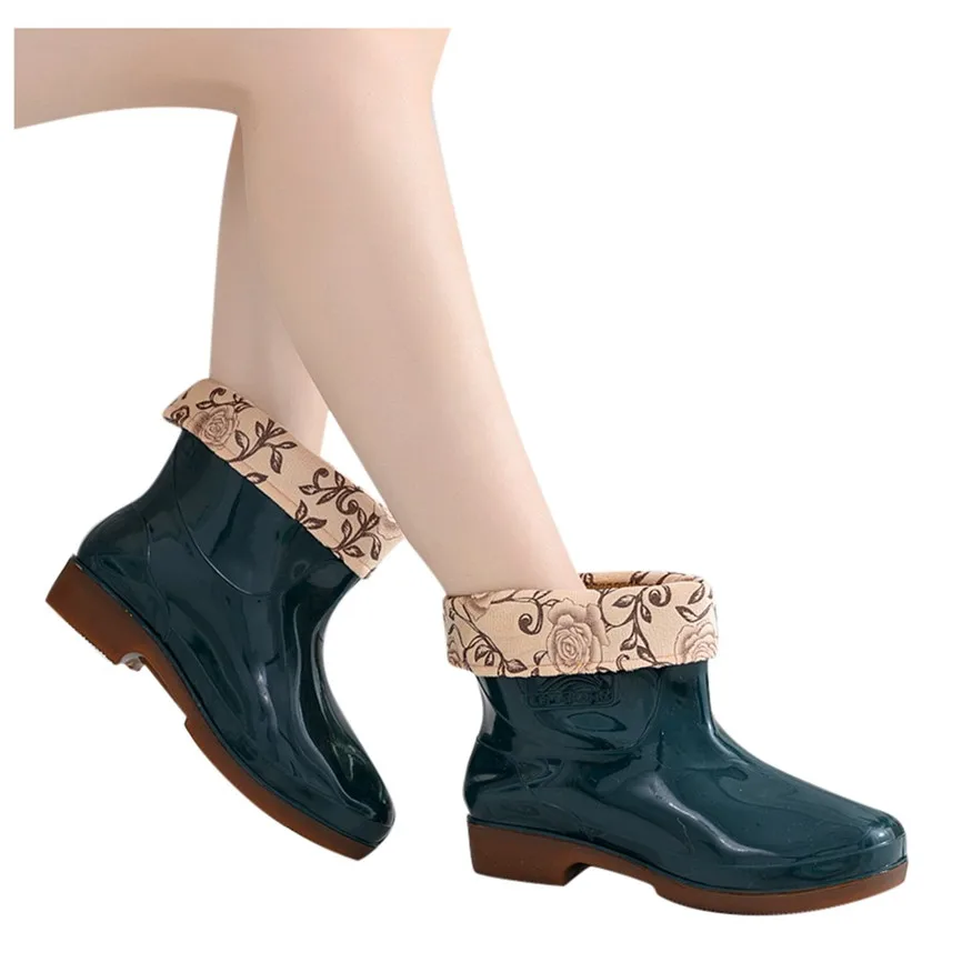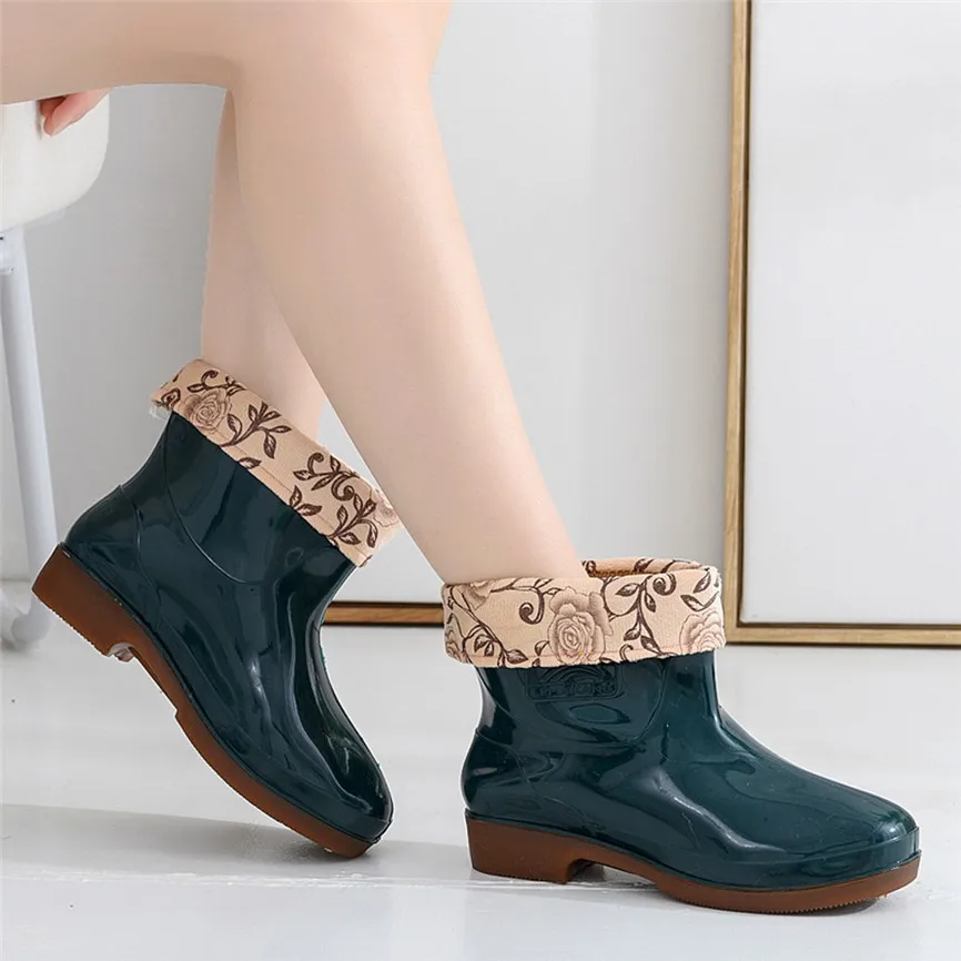 Winter Women's Rain Boots Thicken Cover Waterproof Shoes Unisex Anti-Skip Ankle Boots Female Plus Size High Quality Short Tube Booties