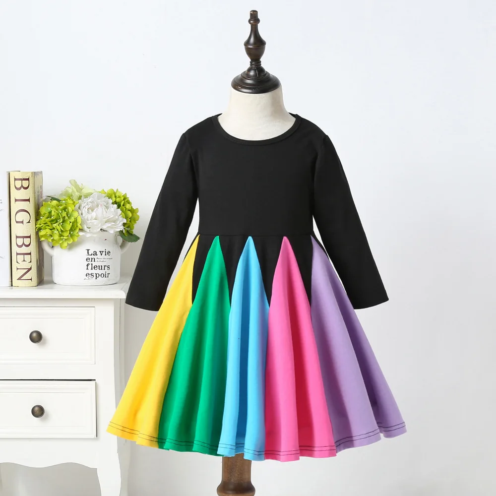 Новое поступление 2019 модное платье для девочек Радужное с длинным рукавом