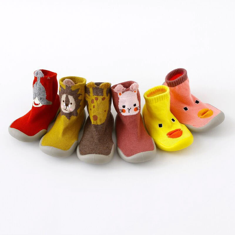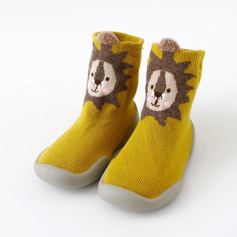 Детские носки с резиновой подошвой; Детские носки-тапочки; Сезон осень-зима вязаные носки для мальчиков и девочек Нескользящие носки средней длины с рисунком для новорожденных