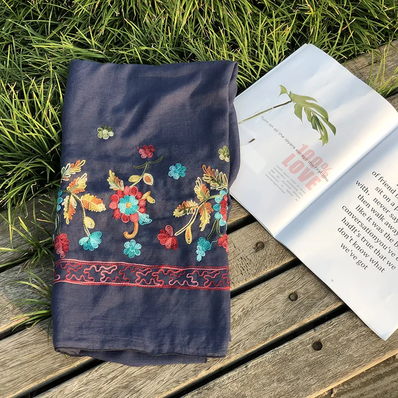 Женский шарф с цветочной вышивкой, хиджаб, мусульманский хиджаб, шарфы, зима 2019