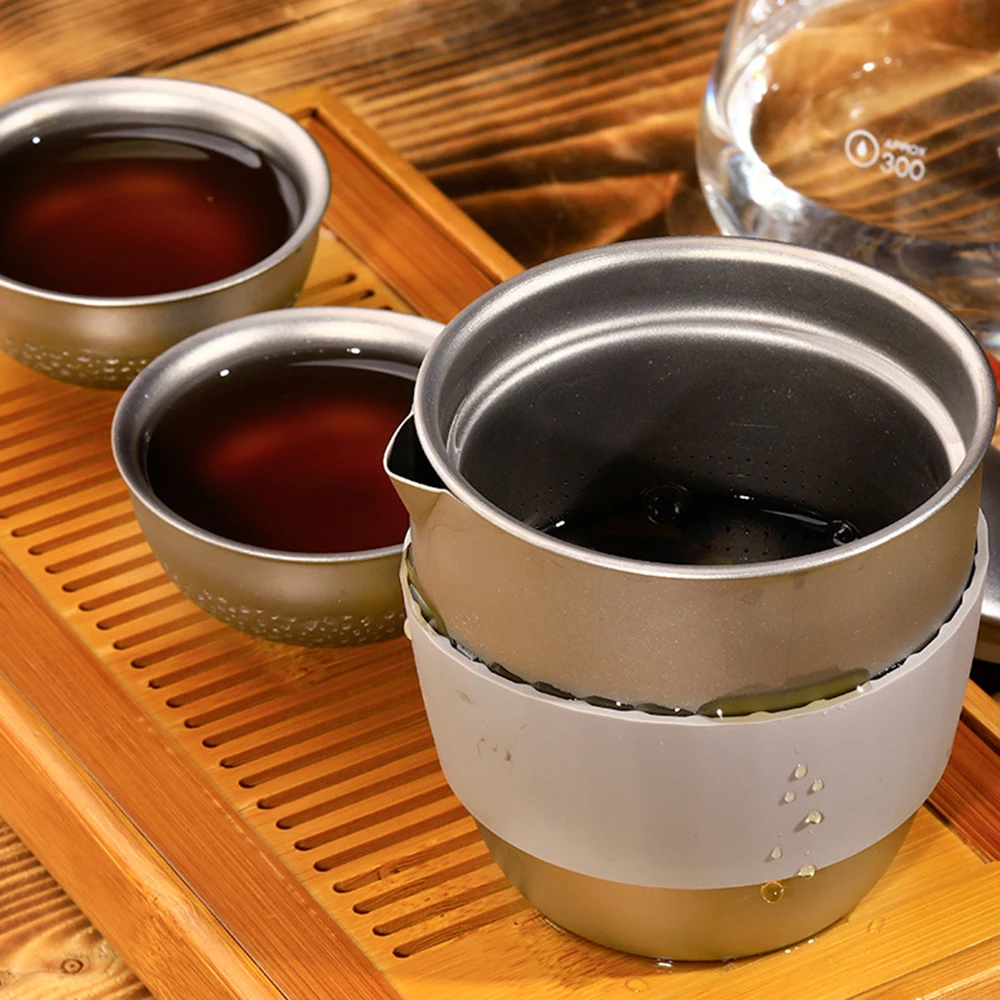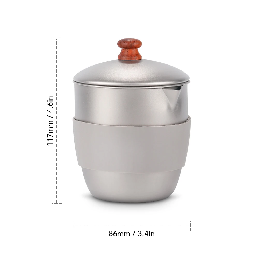 Этот чайник изготовлен из титана, легкий, устойчивый к коррозии, без запаха и вкуса. Отличается сетчатым заварником для заваривания чая, и резиновой втулкой для теплоизоляции. Он отлично подходит для использования в помещении и на улице.