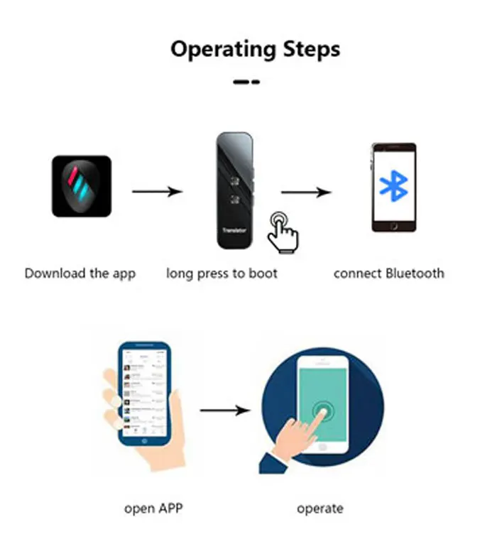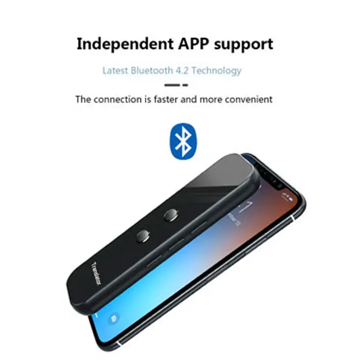 【Voice & Text & Photographic Translation】Intelligent voice recognition technology to facilitate cross-language communication, will also translated into text and displayed on the phone, providing readability for voice text translation, and support for Android 4.3 or IOS 7.0.