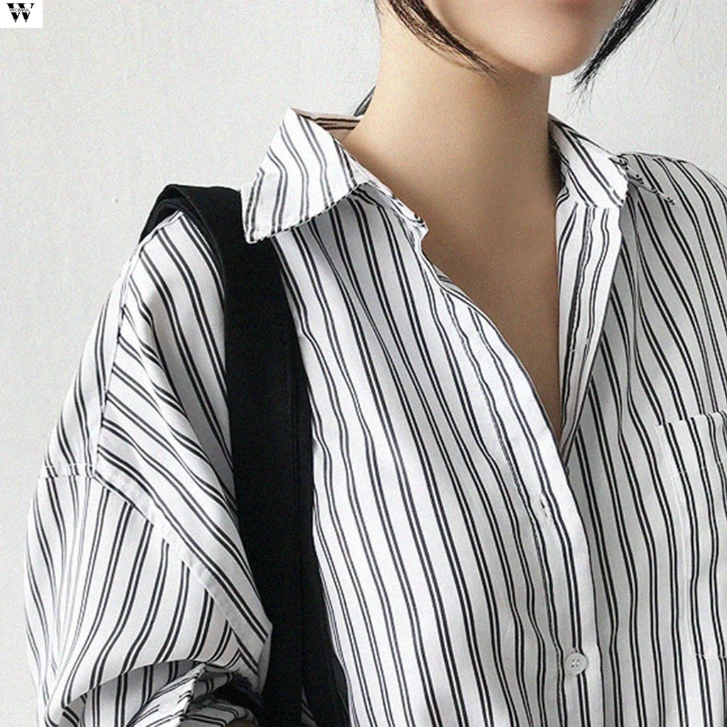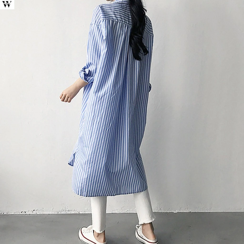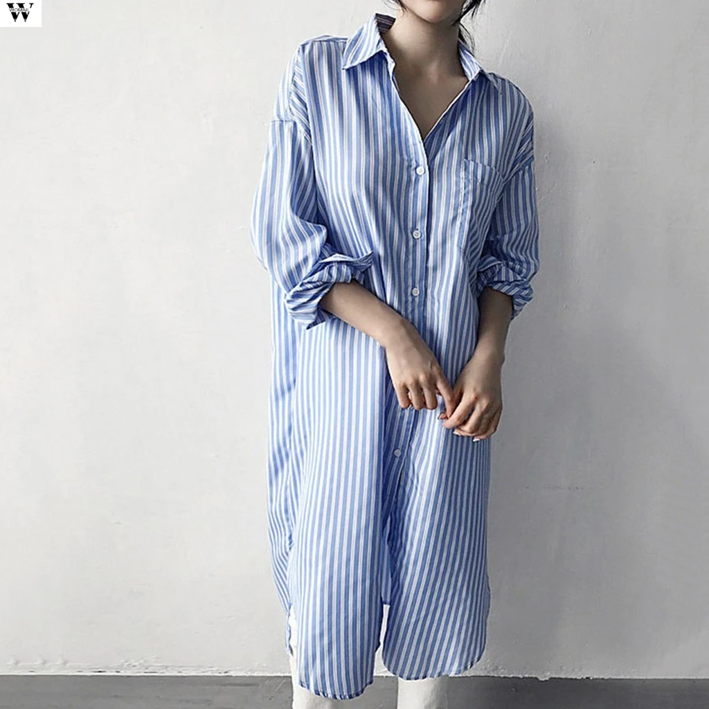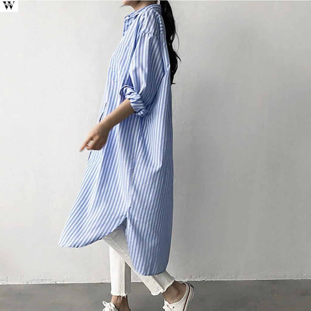 Женская полосатая блузка, длинная свободная рубашка до середины икры, платье-блузка