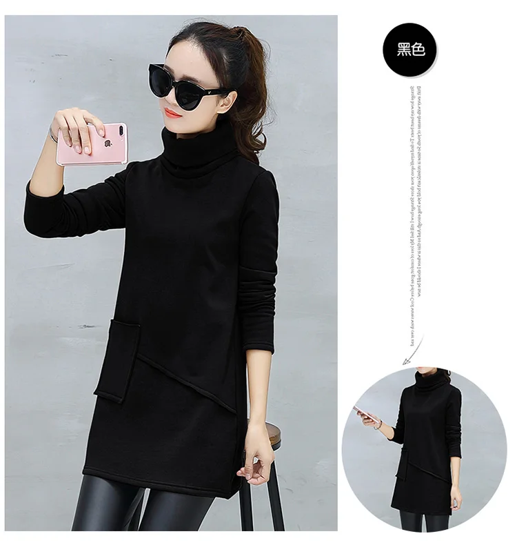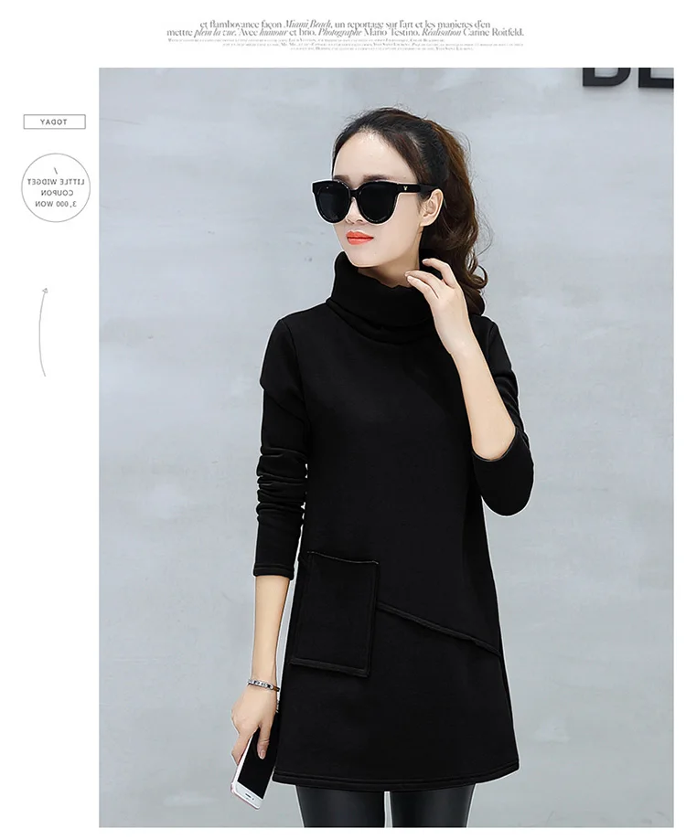 Велюровое флисовое платье зимнее женское с длинным рукавом с карманом маленькое черное ТРАПЕЦИЕВИДНОЕ хлопковое теплое бархатное платье-туника DV531