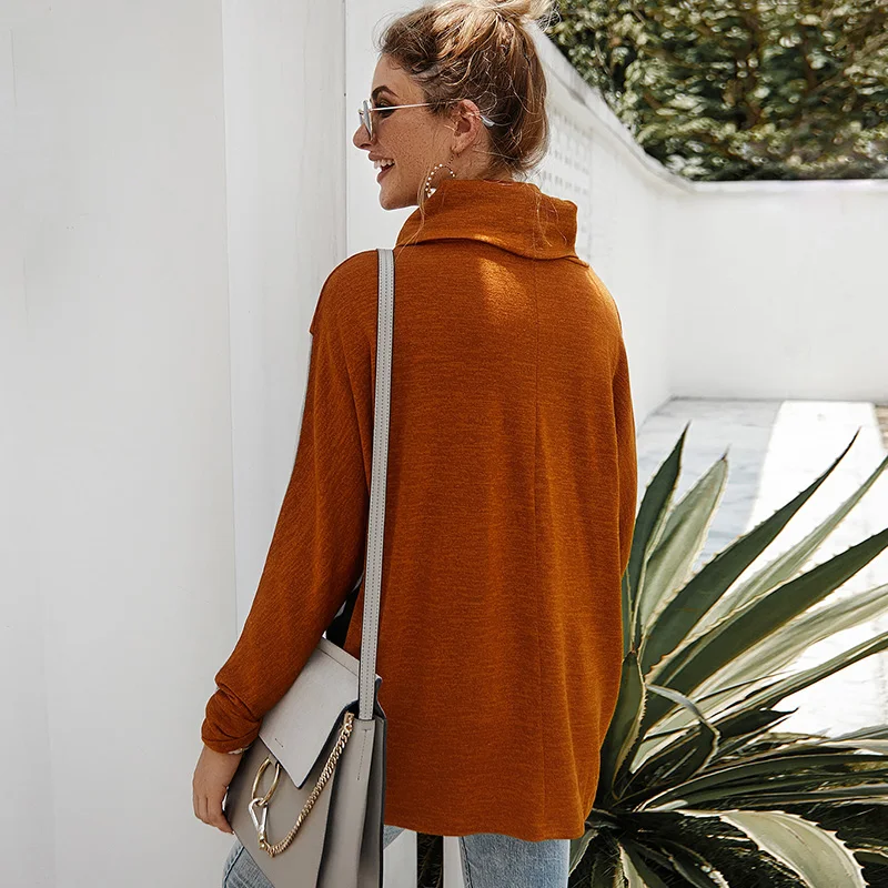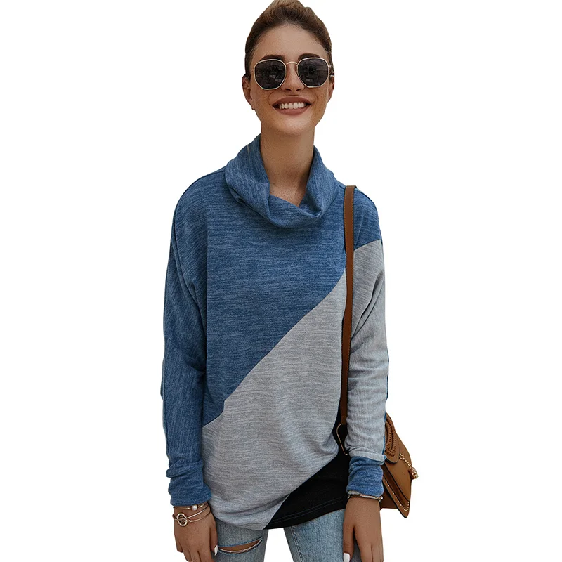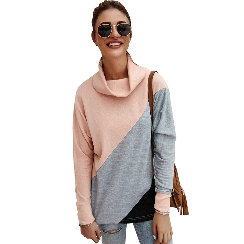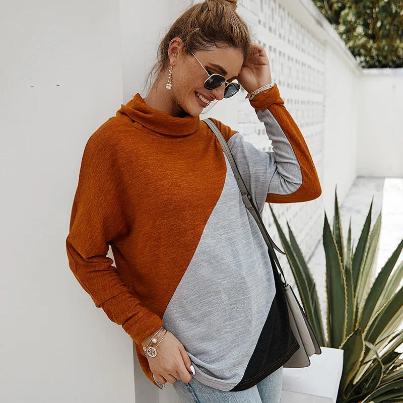 Эта повседневная футболка имеет комбинированный цвет, водолазку, длинный рукав и свободный силуэт. Это очень удобно для повседневного одевания осенью.