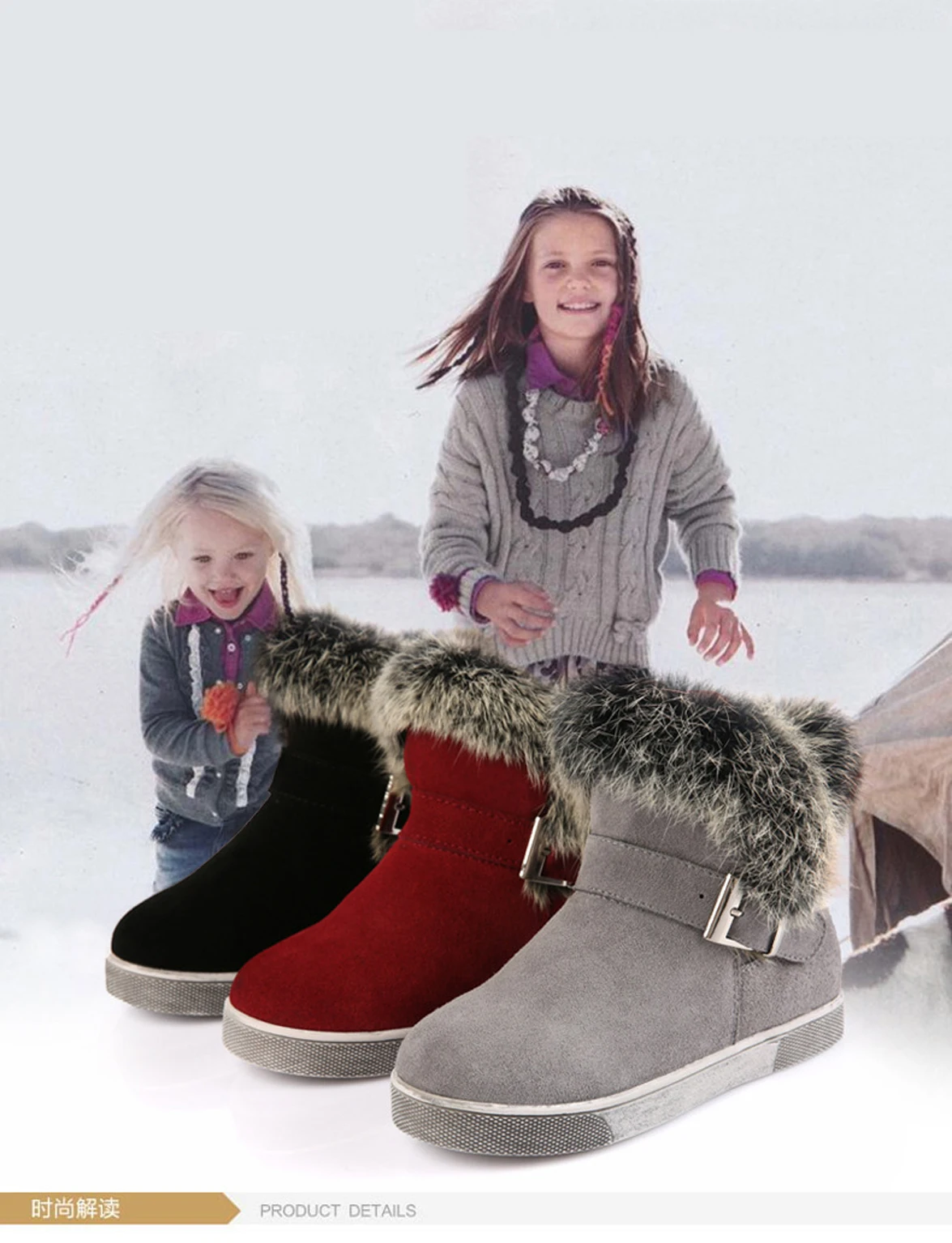 2019 г. Высококачественная Толстая Теплая обувь зимние ботинки из замши с хлопковой подкладкой для больших девочек, Зимние ботильоны на меху для девочек размер 30-37