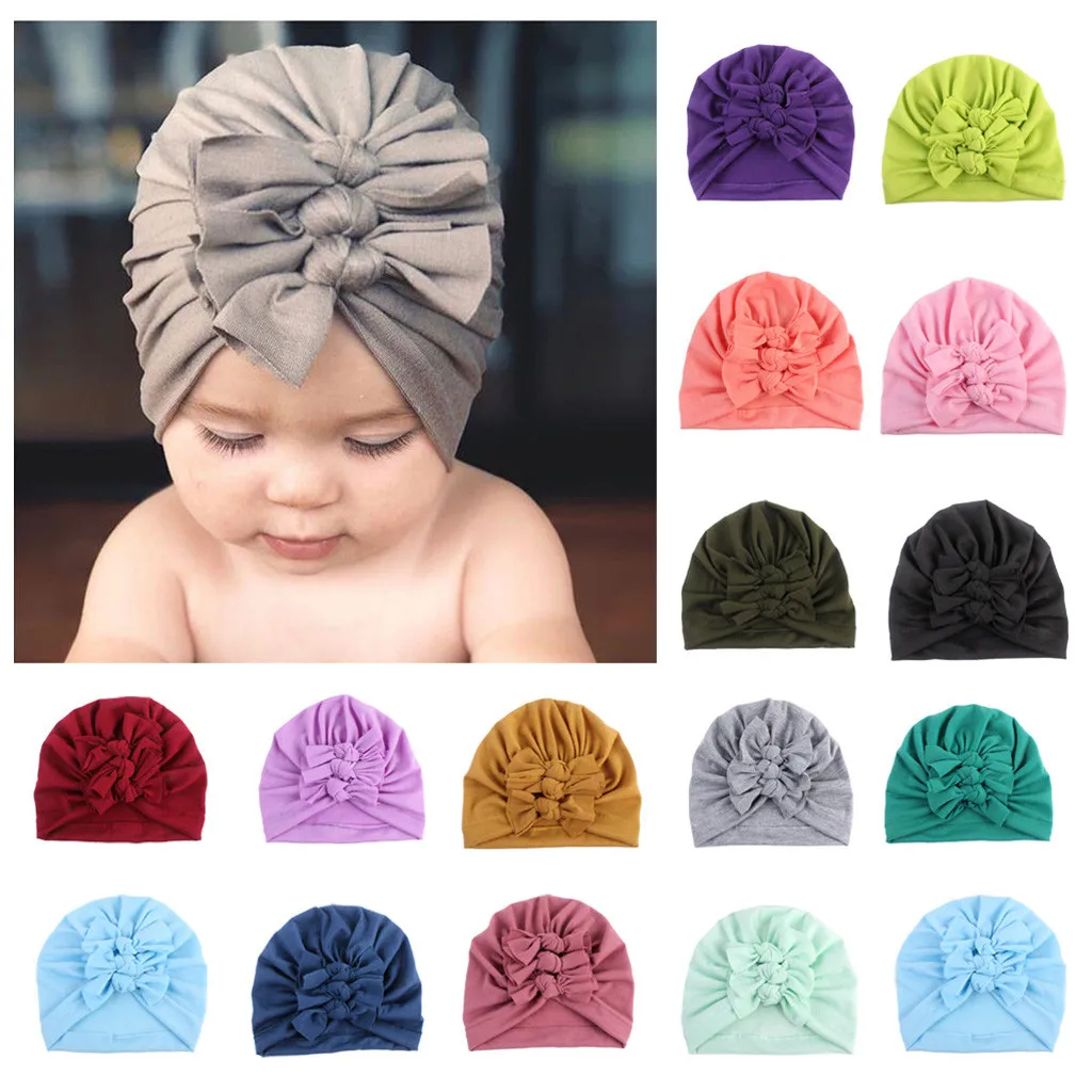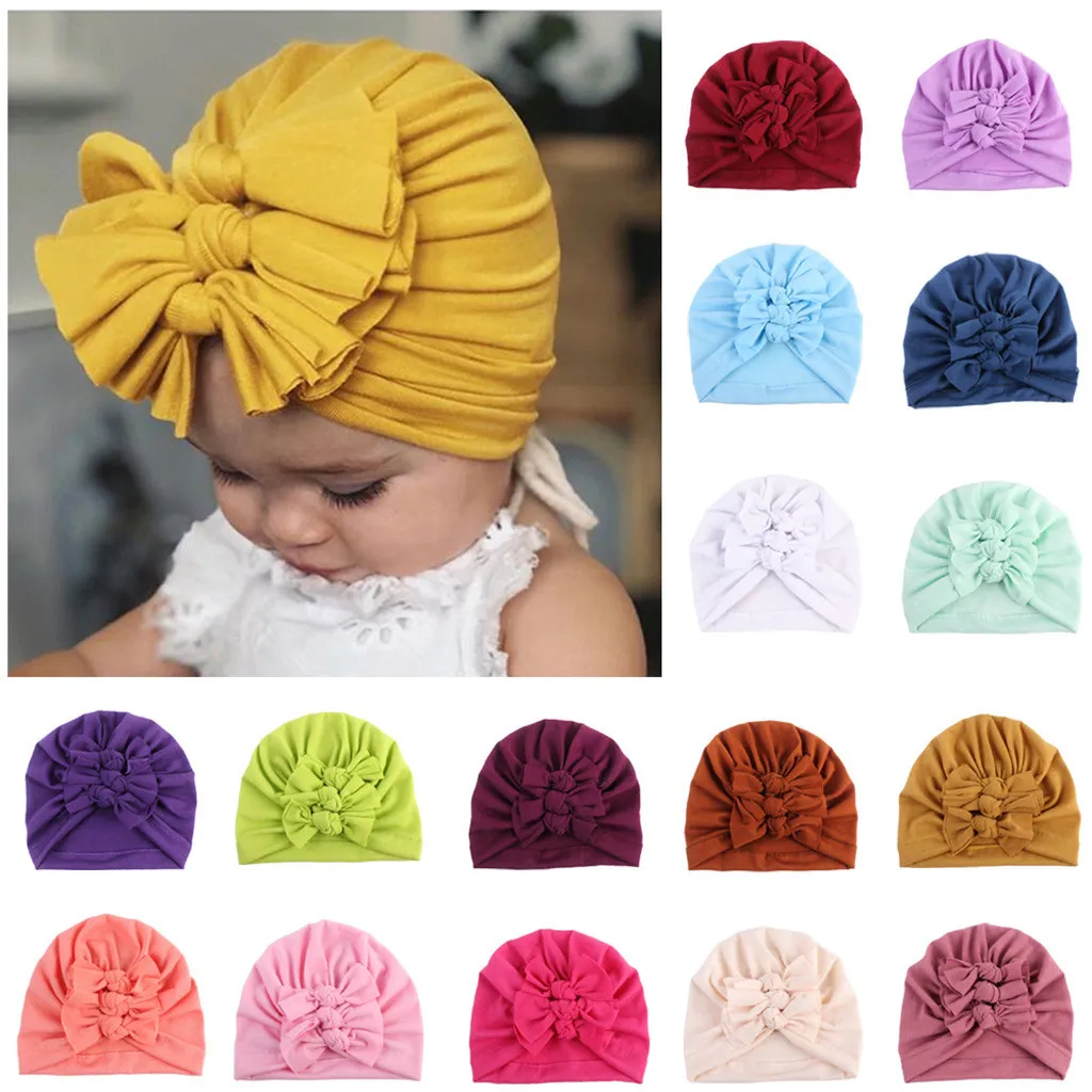 Шапка головной убор с бантиком для новорожденных мальчиков и девочек