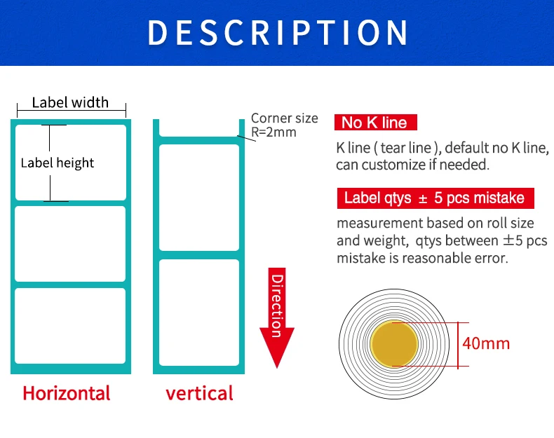Посылка: 1 рулон (40x2 0 мм/1200 шт/1 рулон