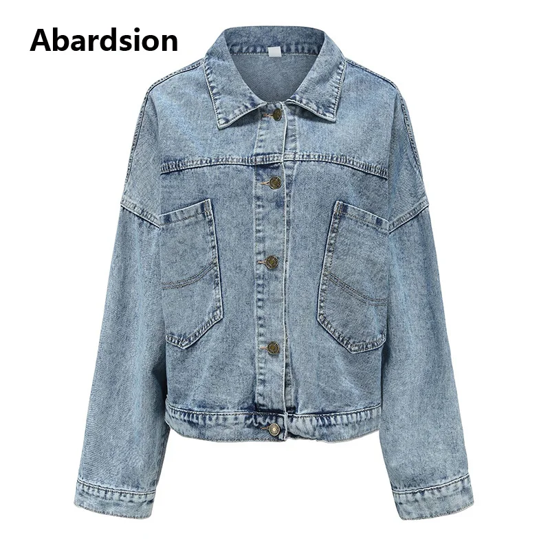 Abardsion Повседневная BF стильная женская джинсовая куртка осень зима пальто синий длинный рукав кнопка вниз рубашка джинсы куртки пальто