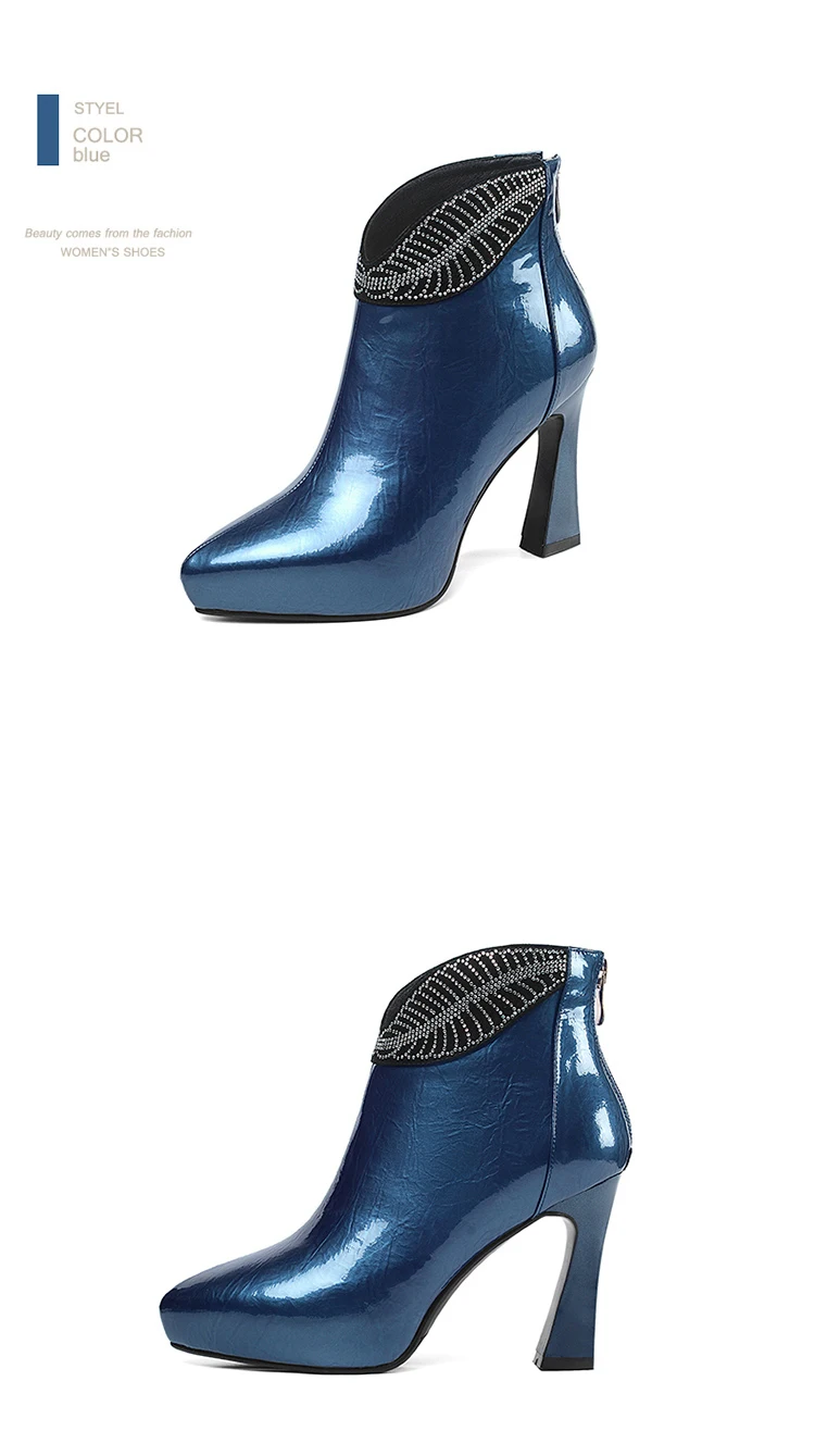 Типы цветов: синий и черный Размер: 34-39 Материал верха: Воловья кожа Внутренний материал: бархат Высота каблука: 10 см Водонепроницаемый: 2 см Примечание: указанные выше данные измеряются по стандарту 36 размера (1,5).