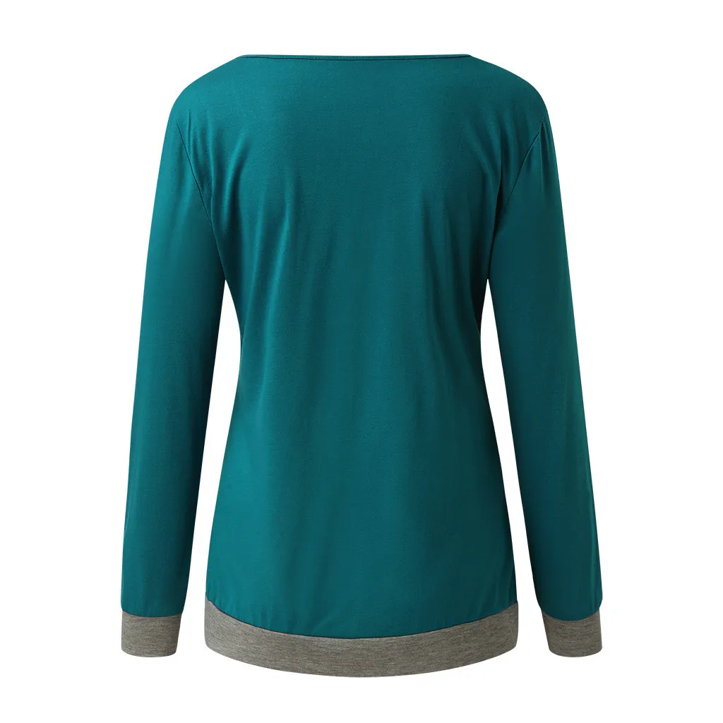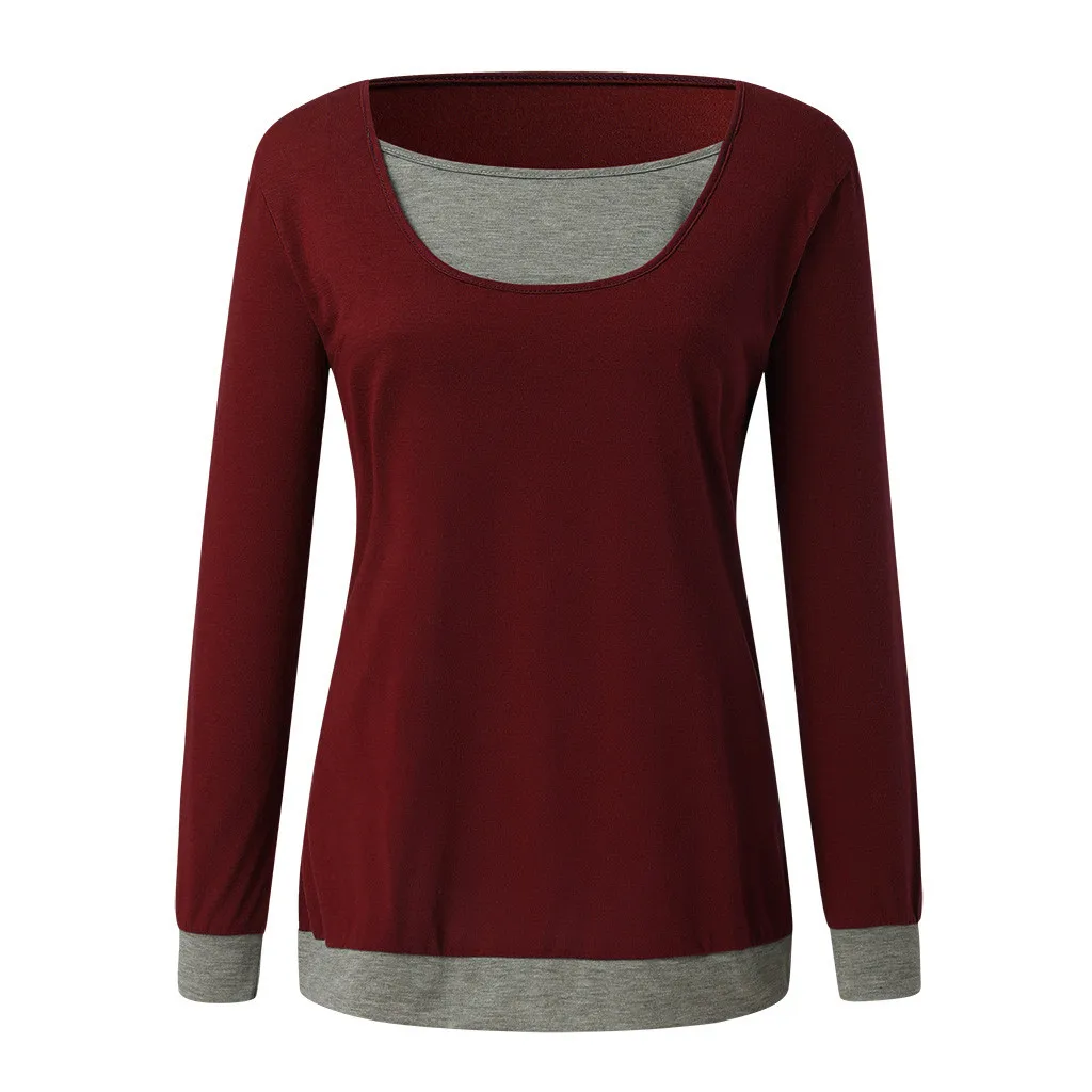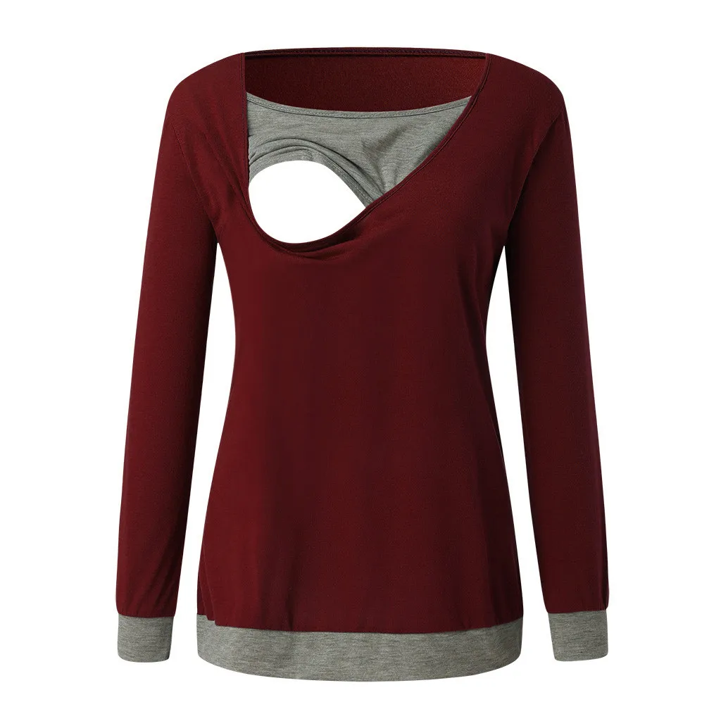 Women's Maternity Round Neck Long Sleeve Nursing Tops For Breastfeeding Blouse