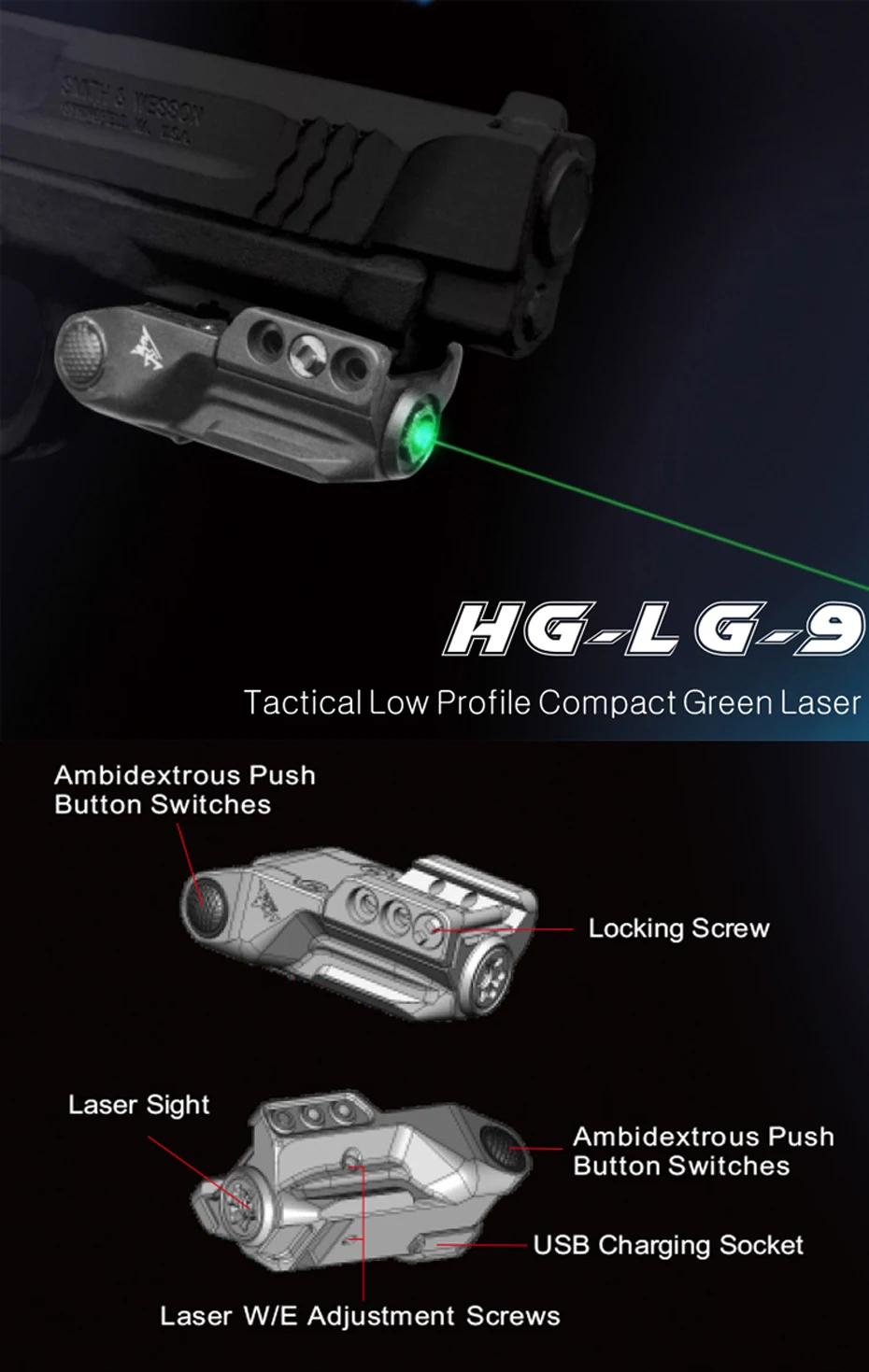 303 открытый ручной светильник регулируемый фокус лазерный прицел 532nm Зеленая