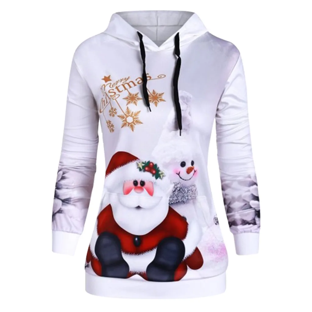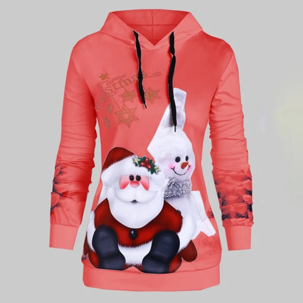 Women Christmas Snowman Snowflake Print Hoodie Pullover Tops Sweatshirt Blouse
